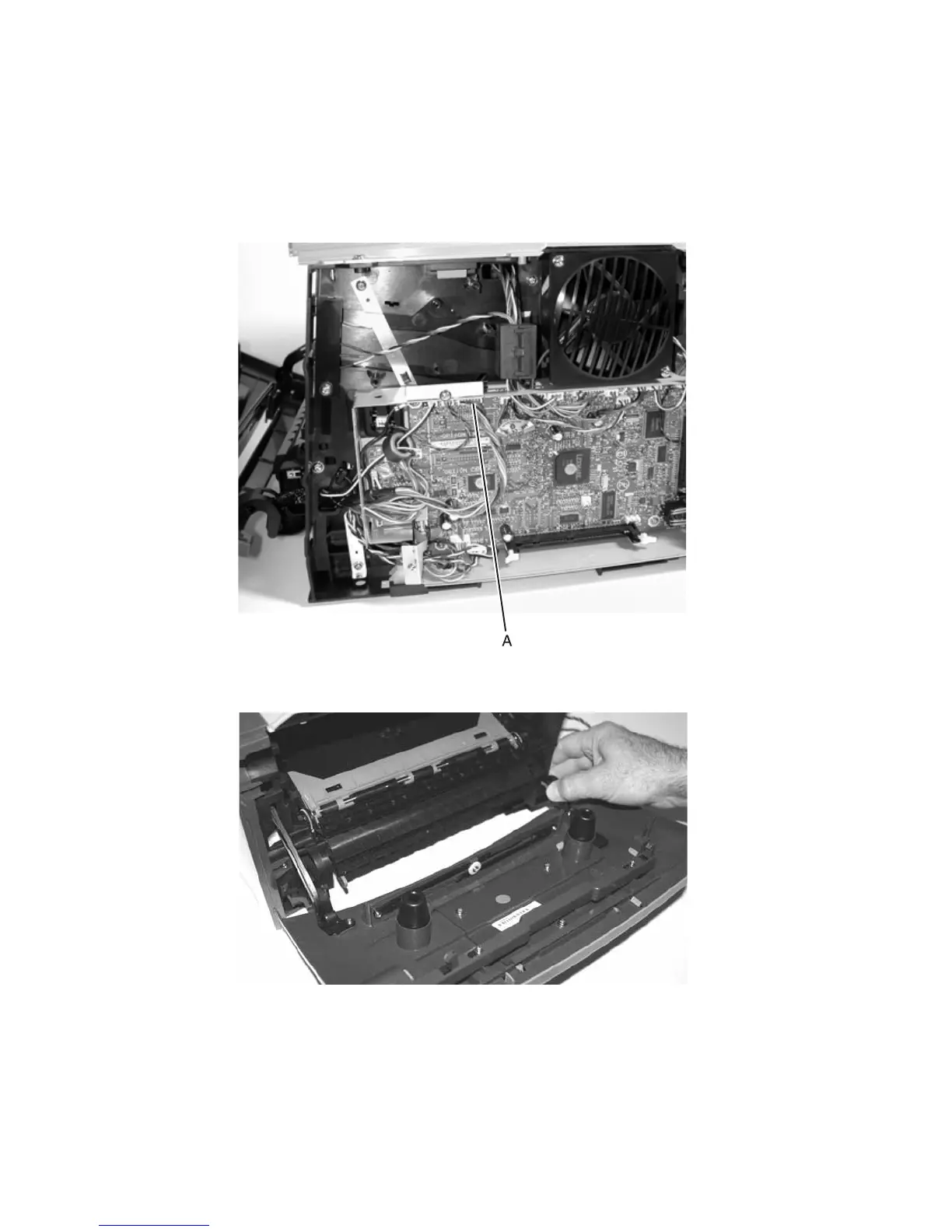 5. Disconnect the operator panel cable (A) from J3 on the controller card.