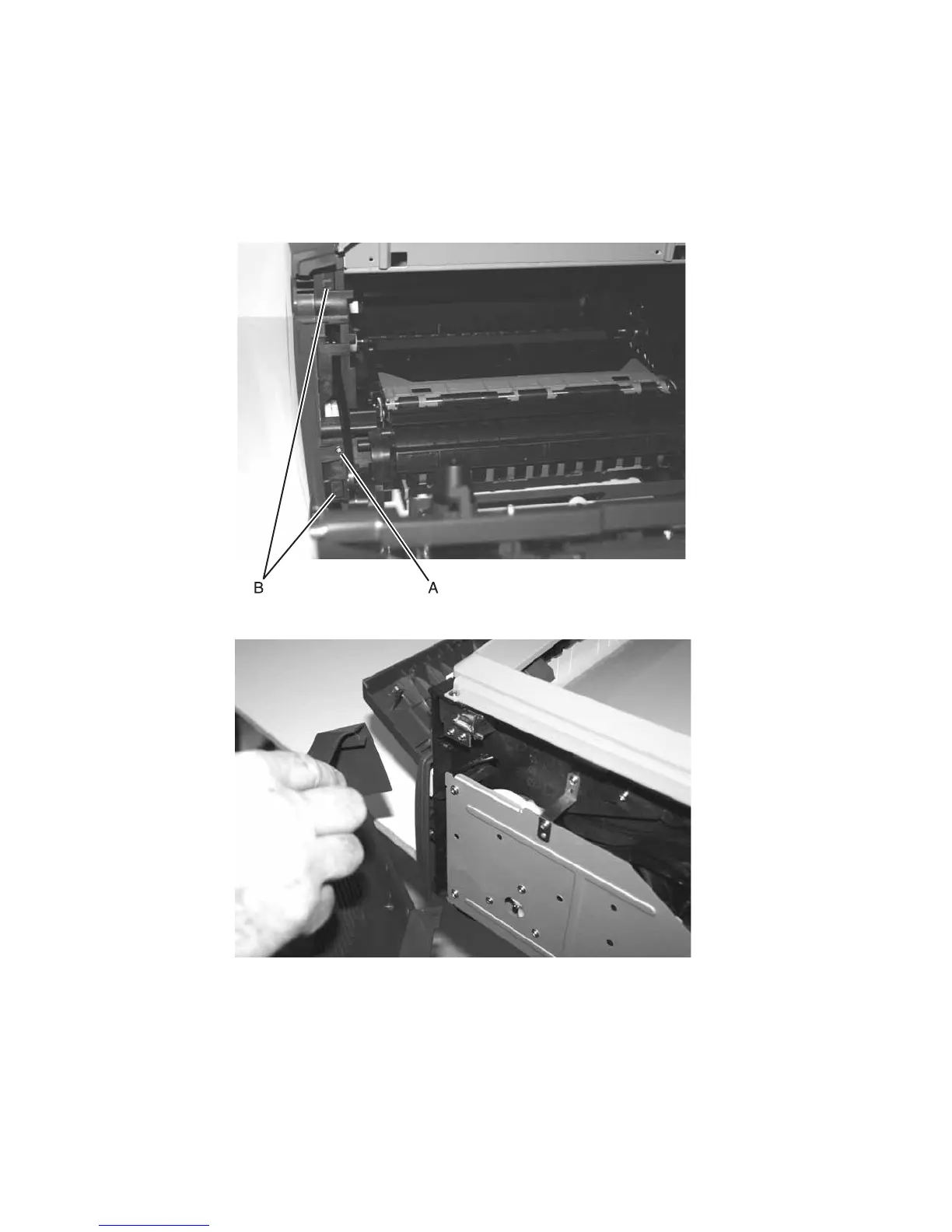 8. Lift the top rear of the cover over the pivot point, and drop the cover away from the printer.