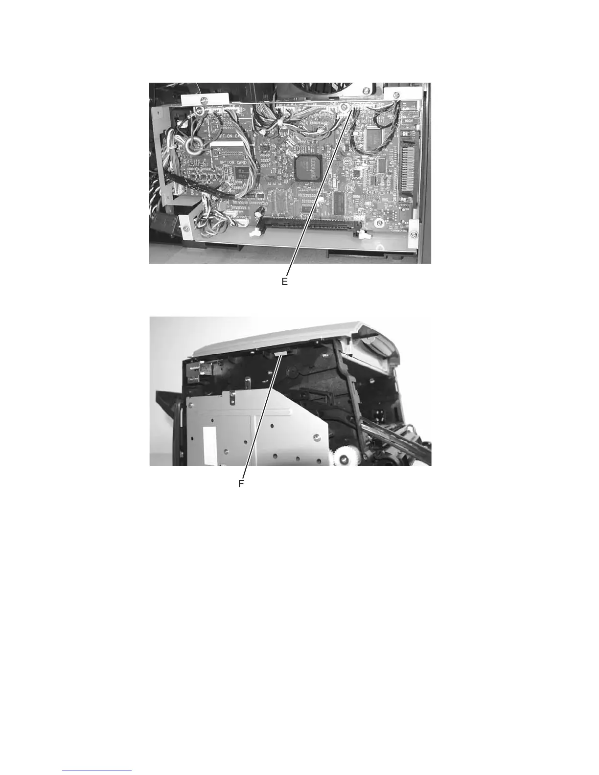 • Verify that the rollers in the top cover contact the exit guide rollers at the top rear. There are arrows under