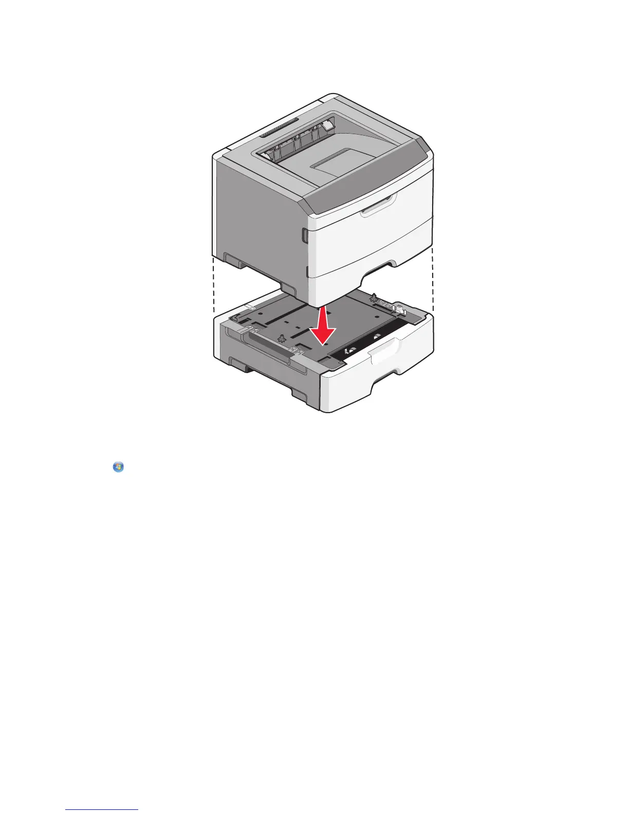 6 Align the outer edges of the printer with the outer edges of the drawer, and then slowly lower the printer into