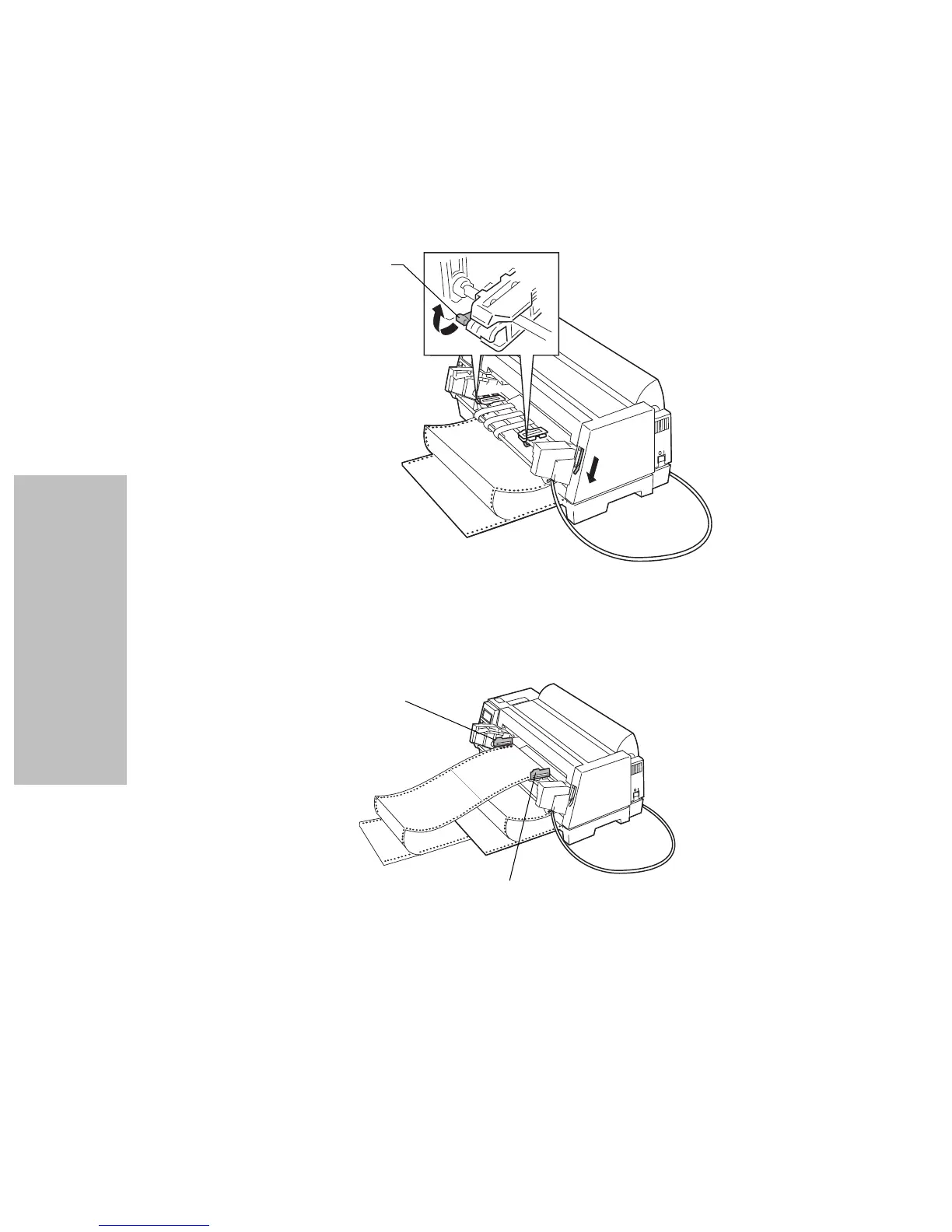 9 Place the paper holes over the second or third pins on the tractors. If