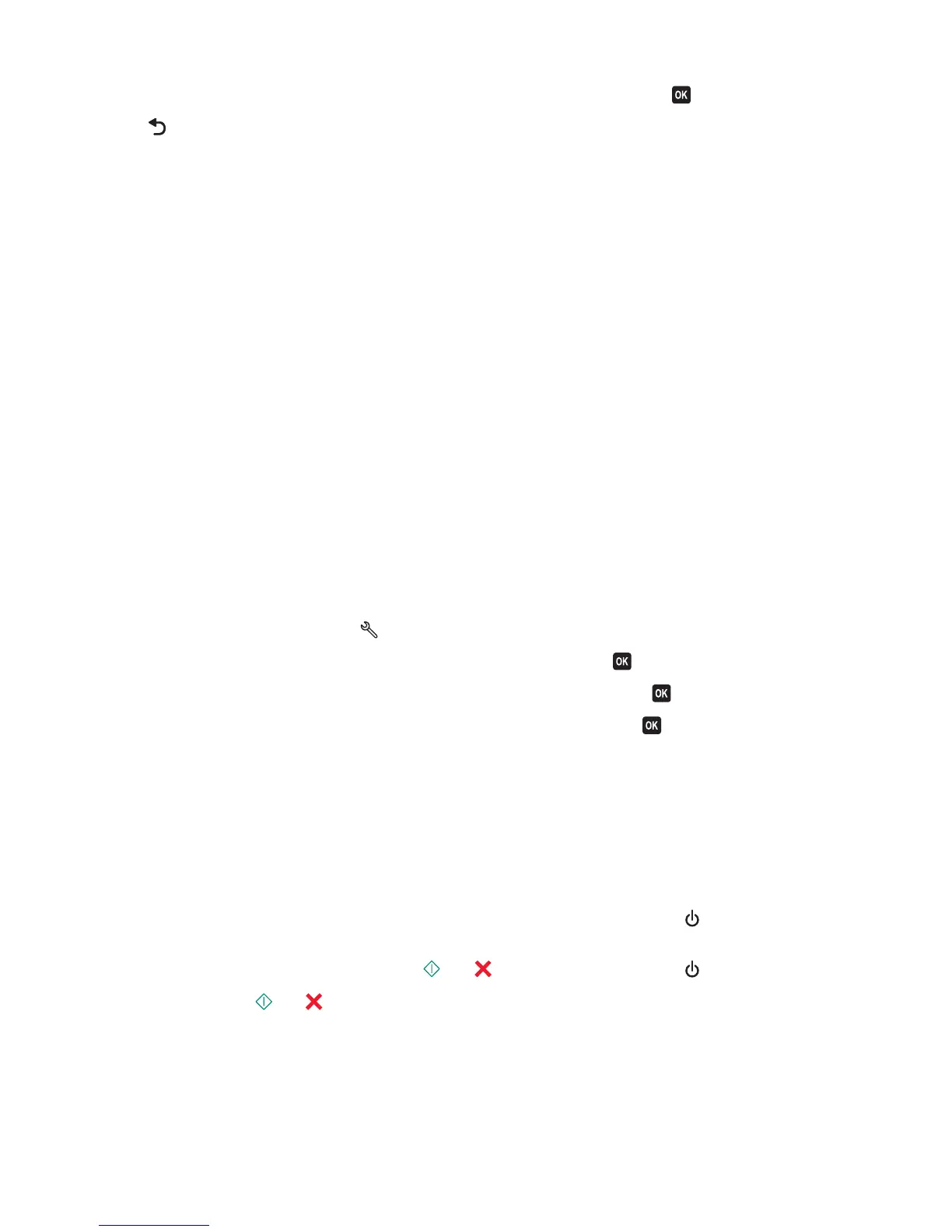 2 From the printer control panel, press and hold and , and then press and release to turn the printer on.