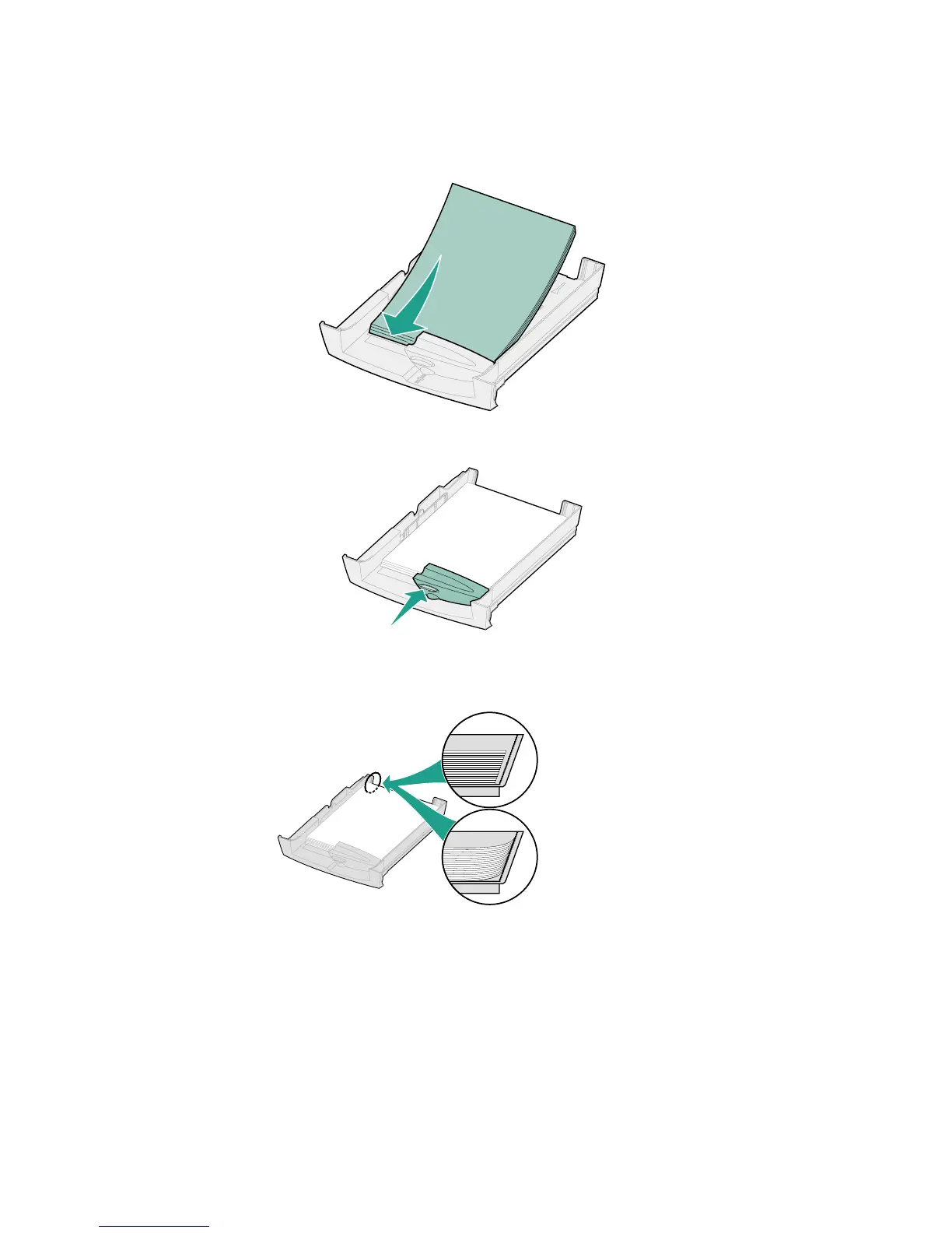 1 Place the paper, print side down, into the tray.