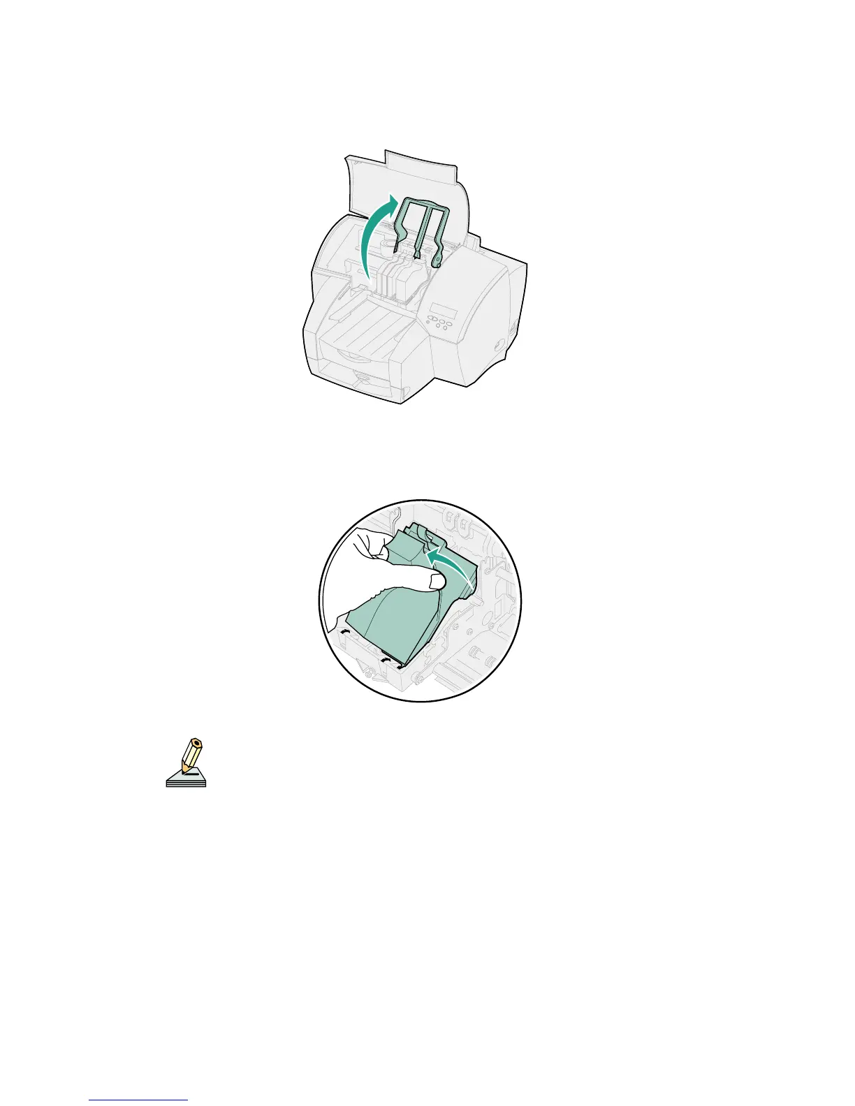 Lift the carrier handle to unlatch the printhead from the carrier.