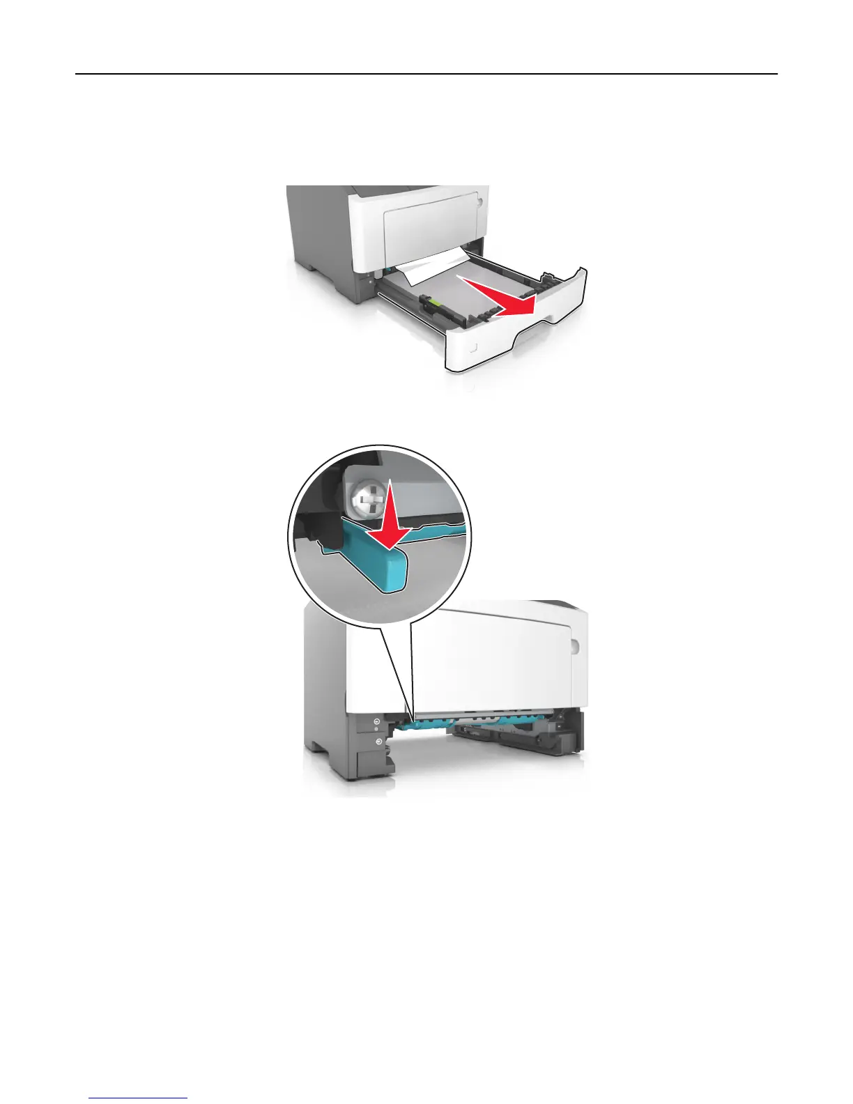 Note: If the jammed paper is not visible in the duplex area, then open the rear door, and then gently remove the