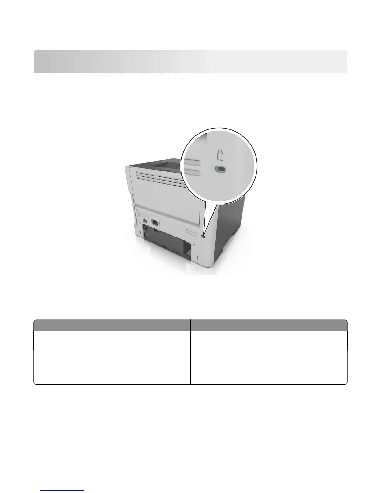 The printer is equipped with a security lock feature. Attach a security lock compatible with most laptop computers in