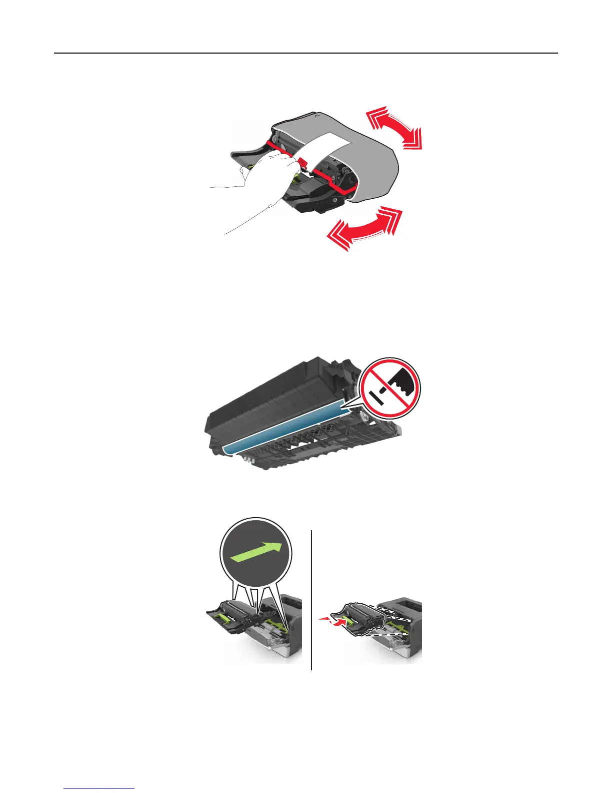 Warning—Potential Damage: Do not touch the photoconductor drum. Doing so may affect the print quality of