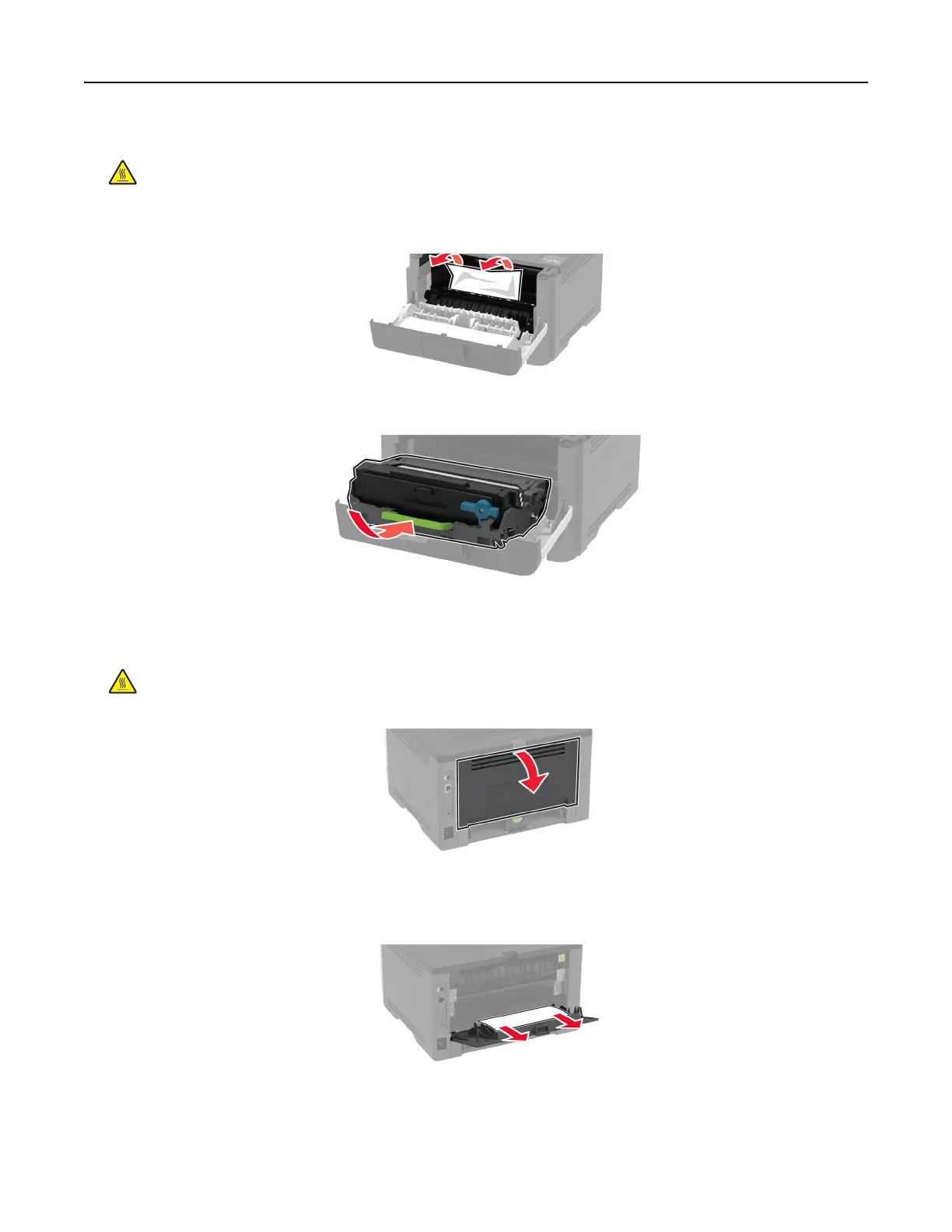 CAUTION—HOT SURFACE: The inside of the printer might be hot. To reduce the risk of injury from a