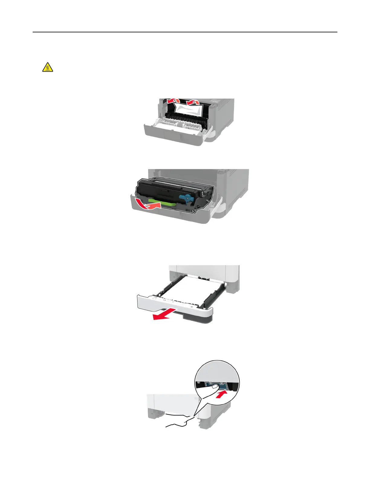 CAUTION—HOT SURFACE: The inside of the printer might be hot. To reduce the risk of injury from a