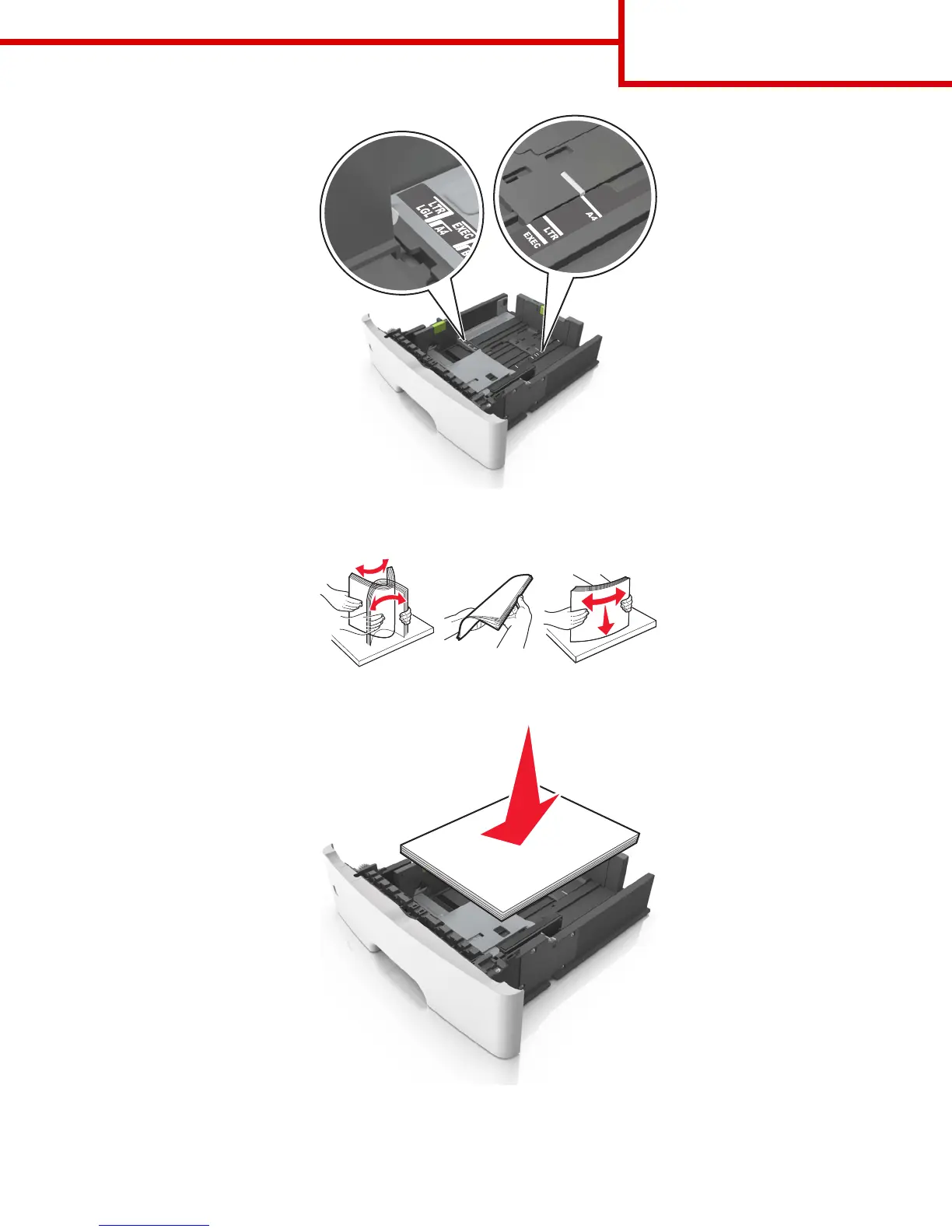 4 Flex the sheets back and forth to loosen them, and then fan them. Do not fold or crease the paper. Straighten the edges on