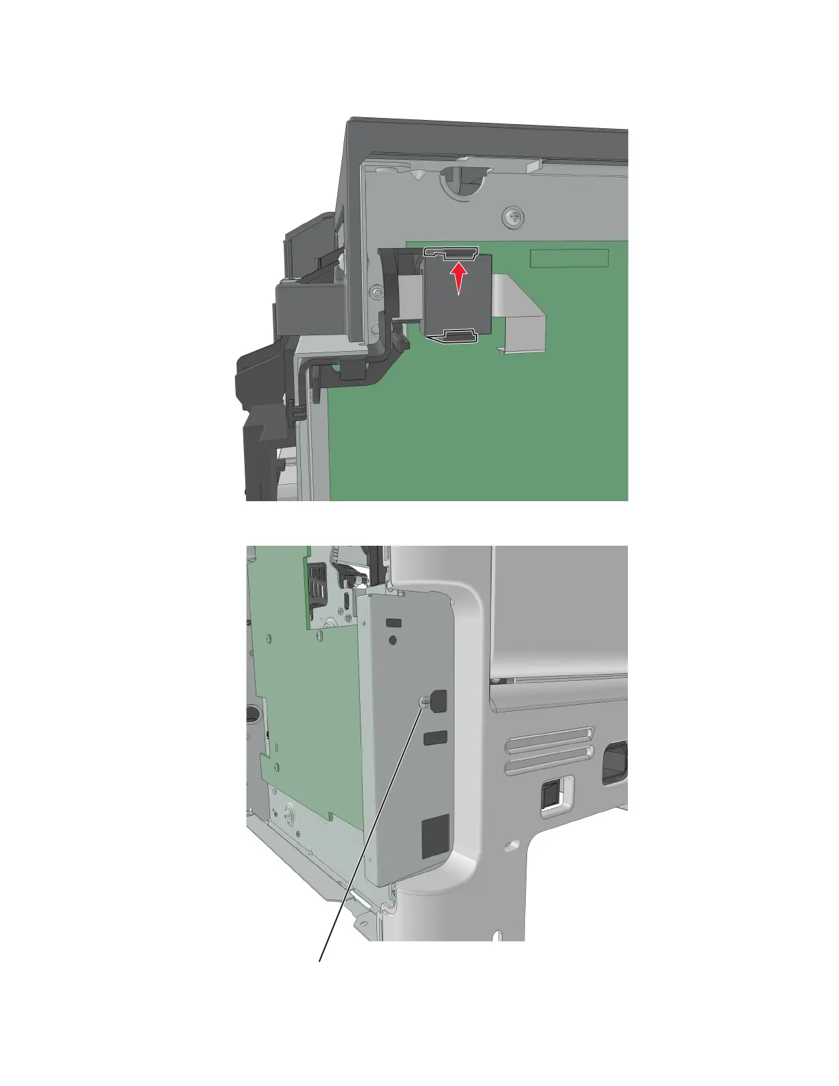 5 Remove the screw (A) from the rear side of the printer.