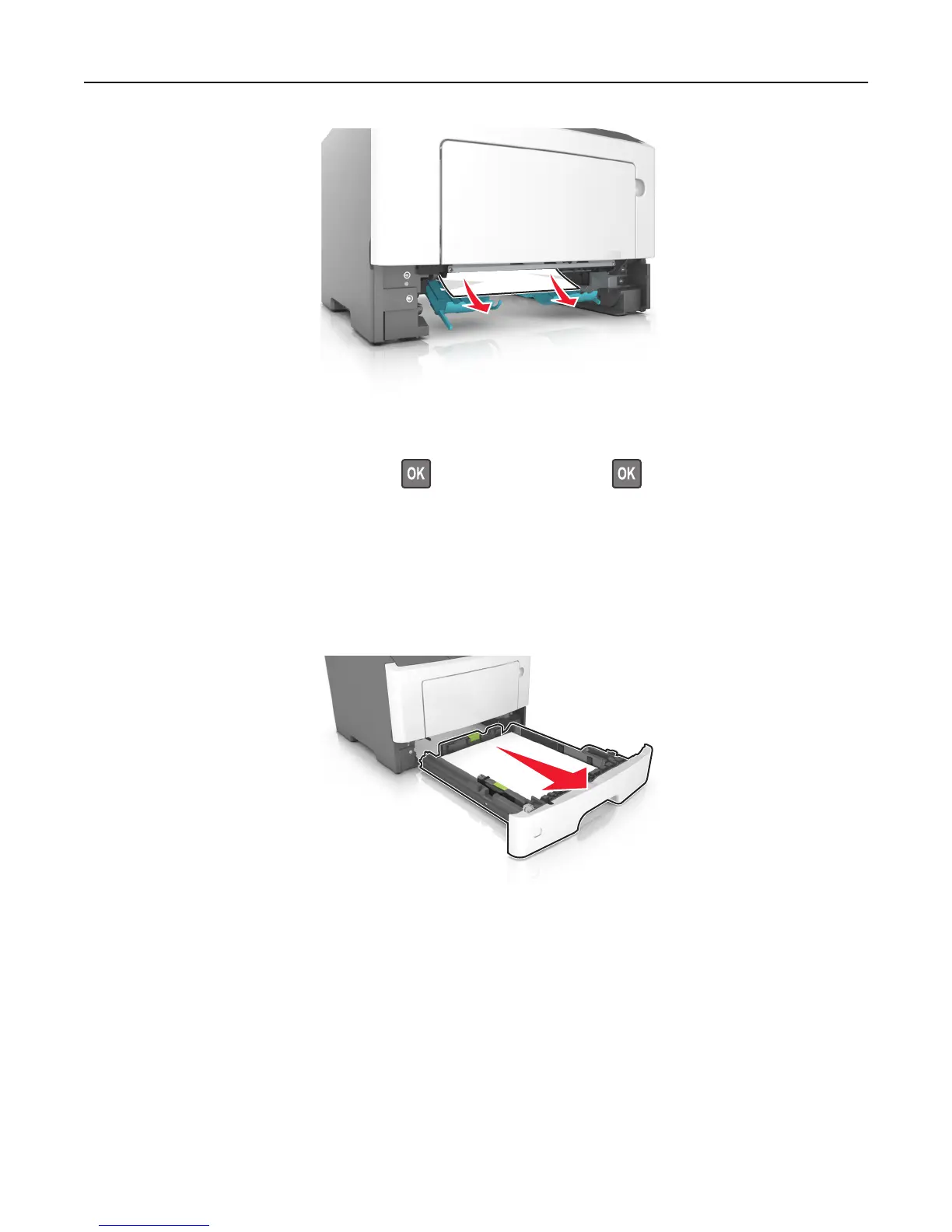 Note: The message on the printer display indicates the tray where the jammed paper is located.