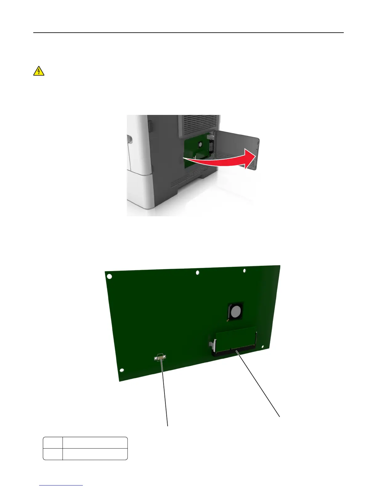 CAUTION—SHOCK HAZARD: If you are accessing the controller board or installing optional hardware or