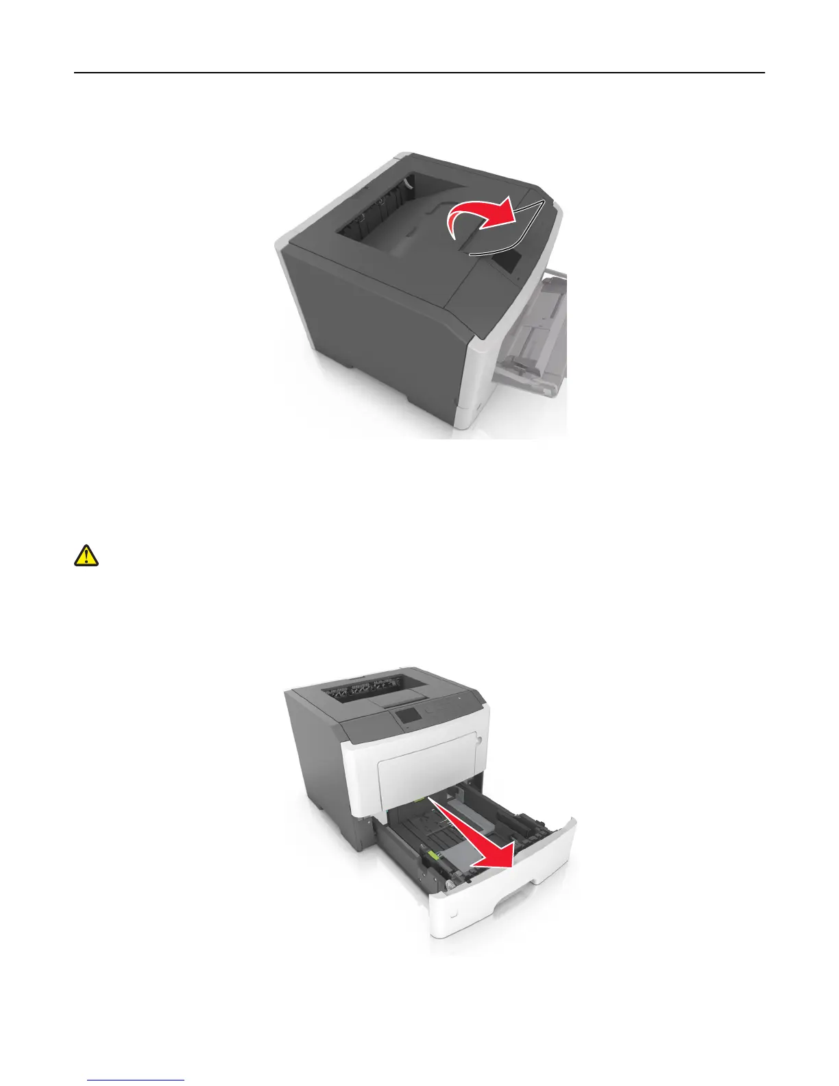 Note: Do not remove trays while a job prints or while Busy appears on the printer display. Doing so may cause