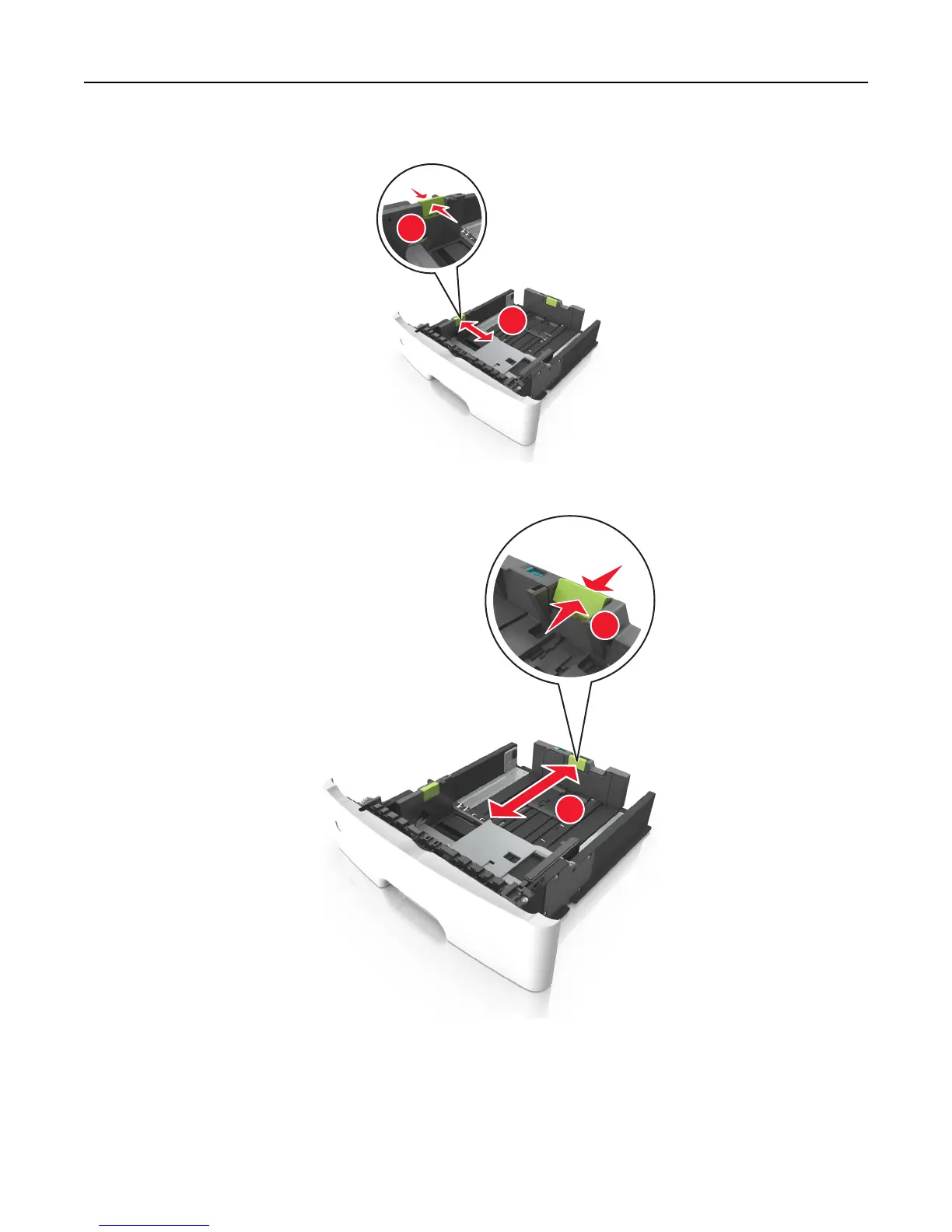 3 Squeeze and then slide the length guide tab to the correct position for the size of the paper you are loading.