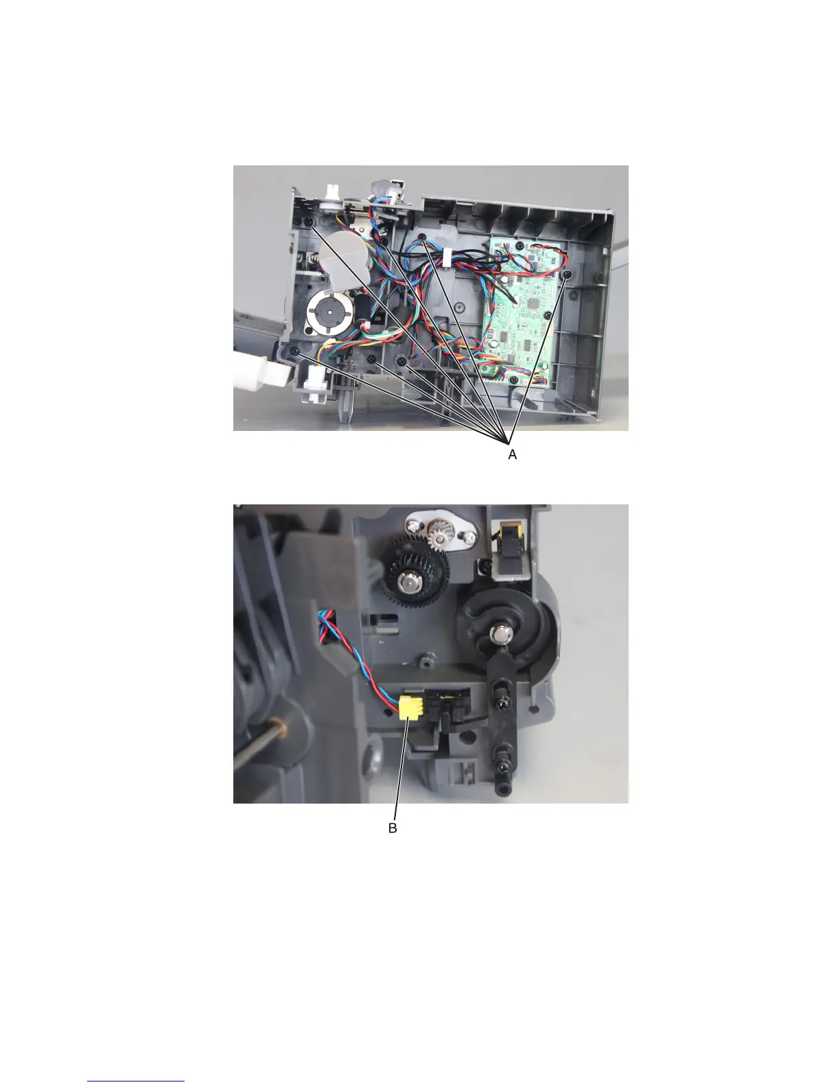3 Pull away the frame to access the parts underneath. Disconnect the sensor cable (B).