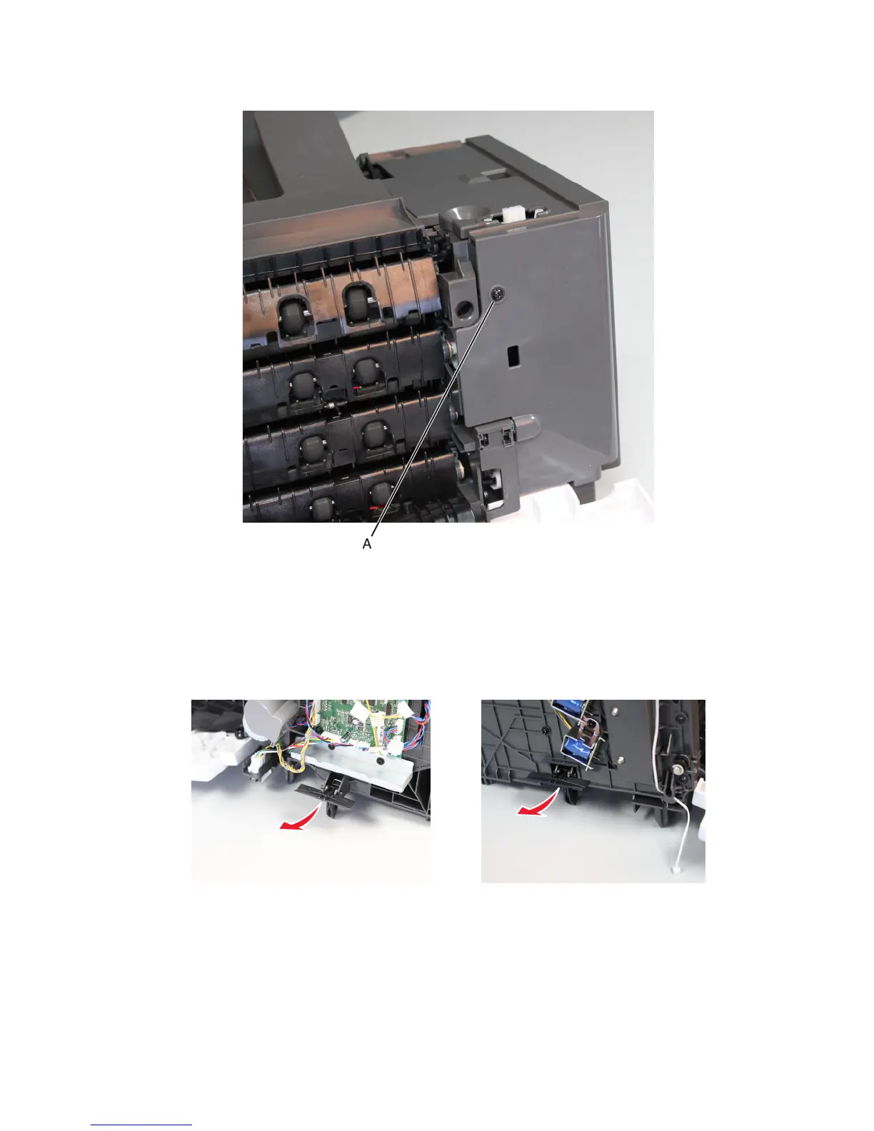 3 Remove the screw from the mailbox (A), then remove the left cover.