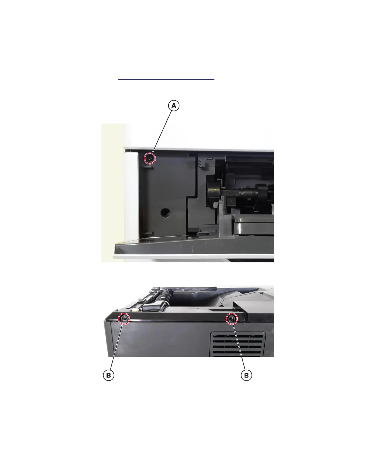 2 Open the MPF door, and then remove the screw (A).