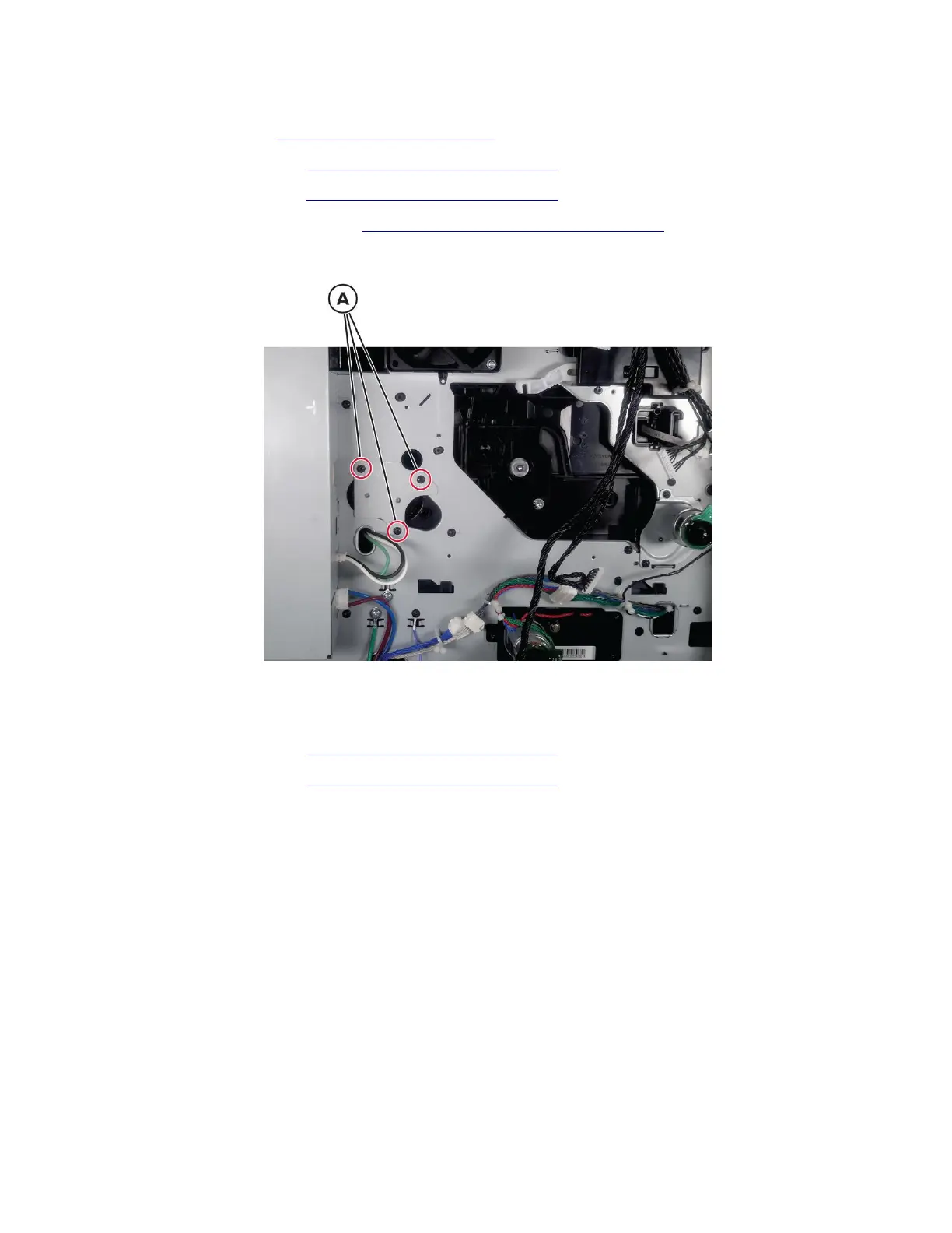 5 Remove the three screws (A), and then remove the drive gears.