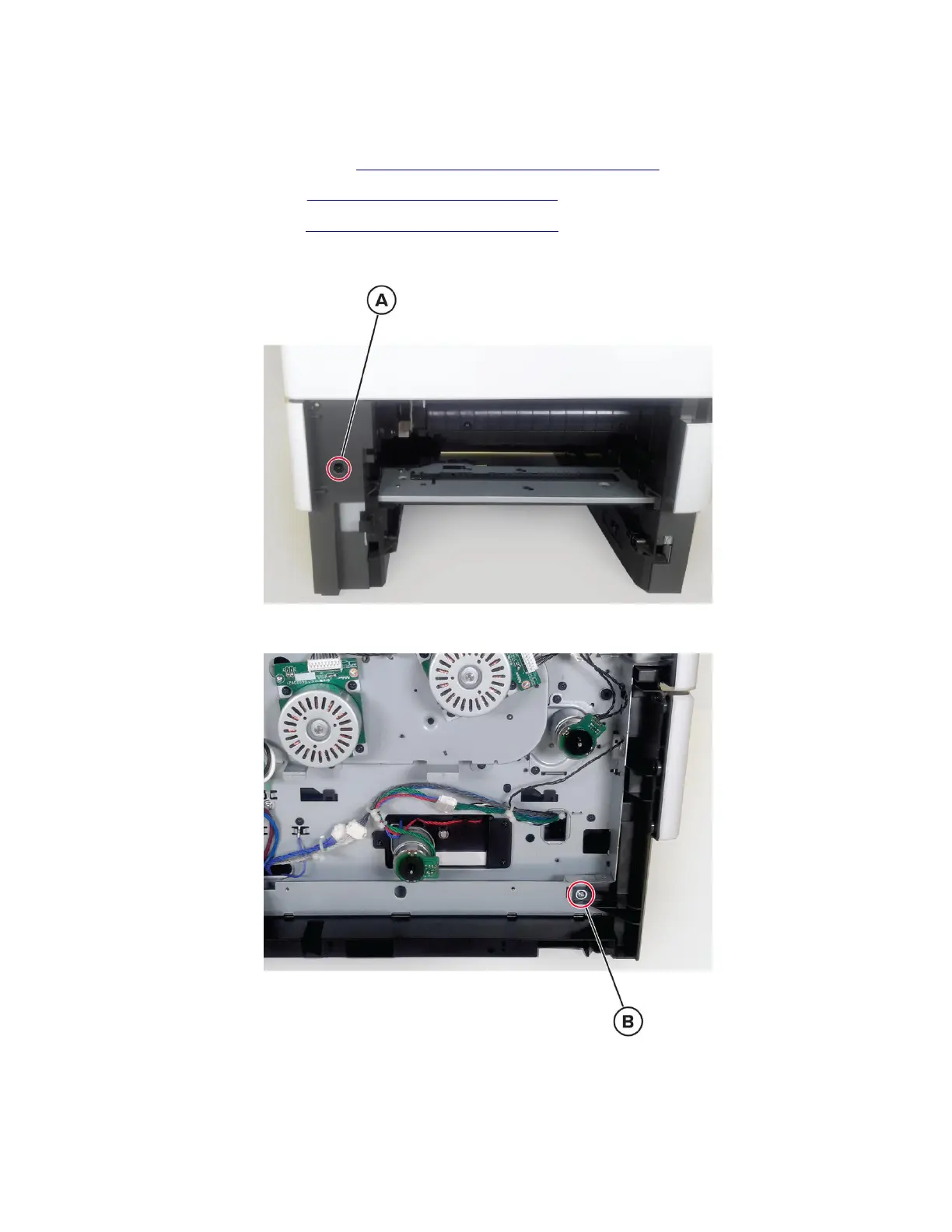 6 Remove the screw (B) from the left side, and then remove the cover.