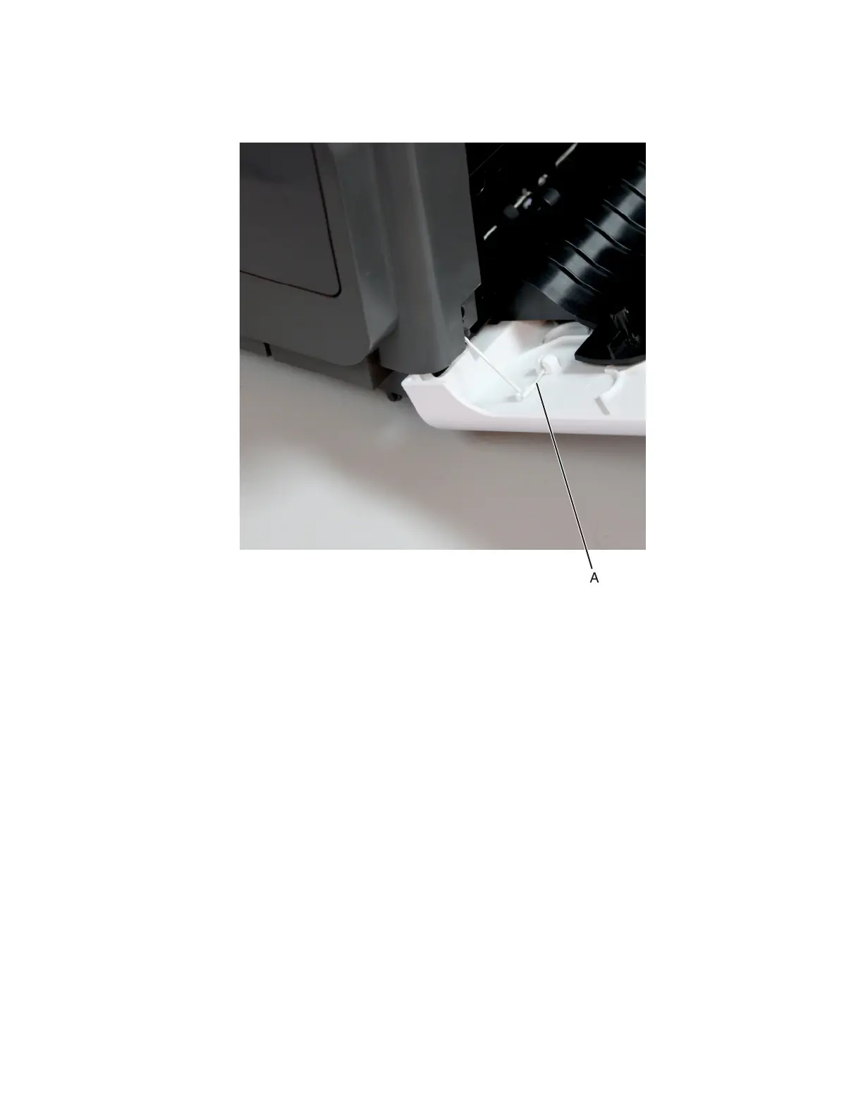 1 Open the rear door, and then detach the string (A) from the rear door.