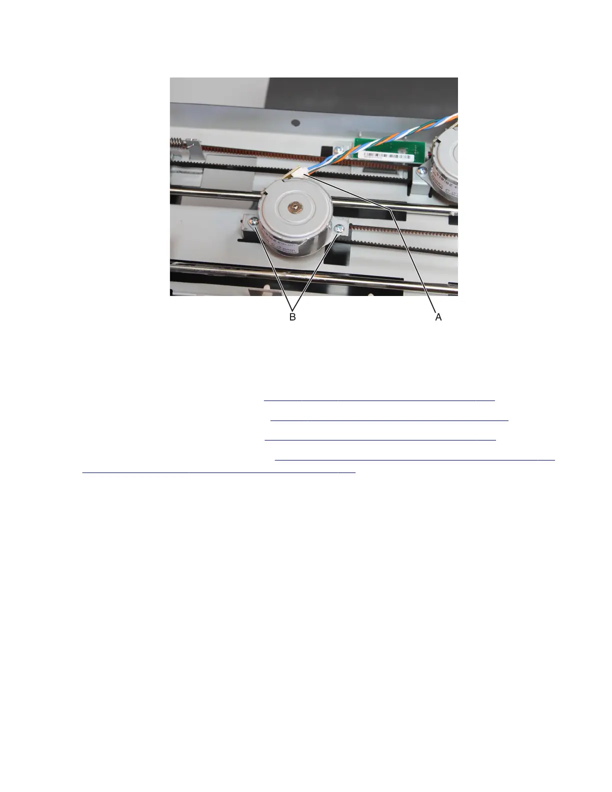 4 Release the motor engaged to the belt. See “Motor (staple finisher right tamper) removal” on page 619