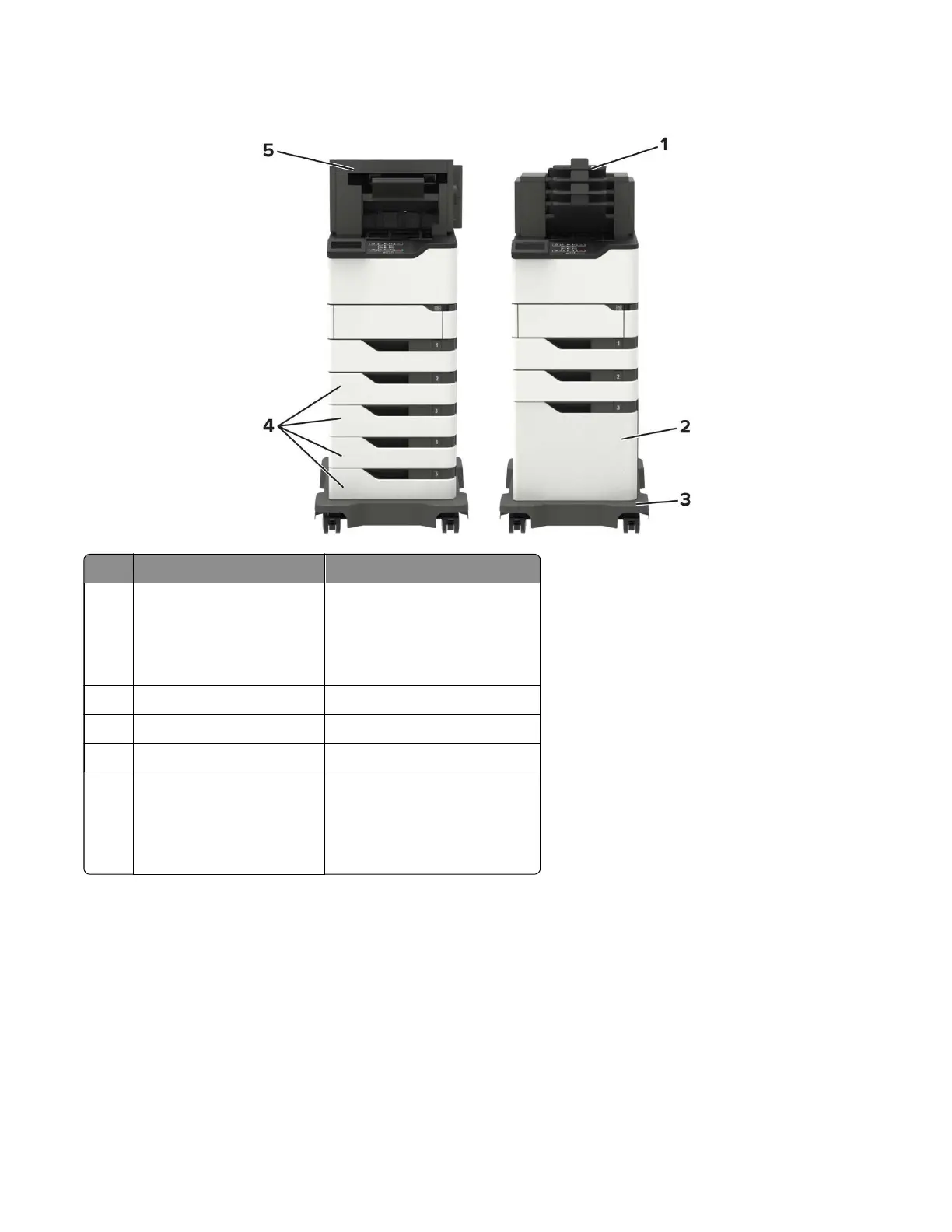 4 Optional 550‑sheet tray Optional 250‑sheet tray