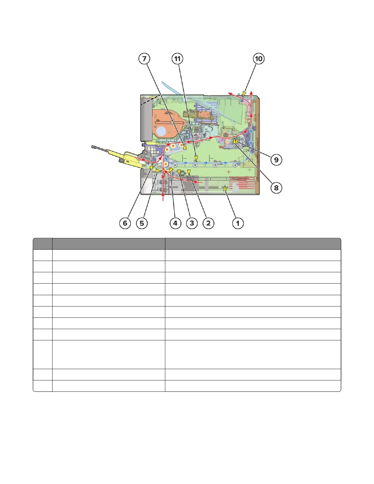 11 Sensor (duplex path) Detects the paper as it travels the duplex paper path.