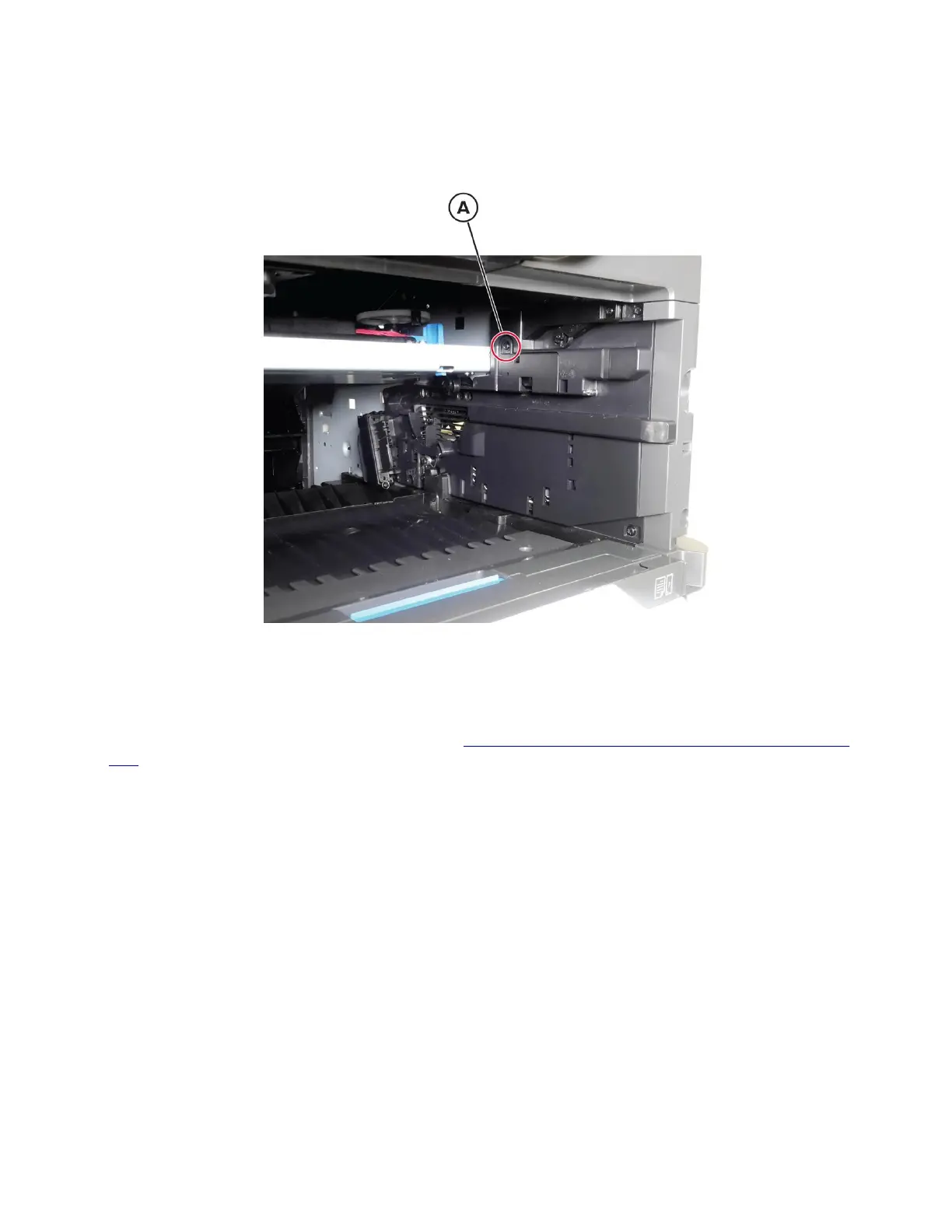 2 Remove the toner cartridge shutter actuator. See “Toner cartridge shutter actuator removal” on page