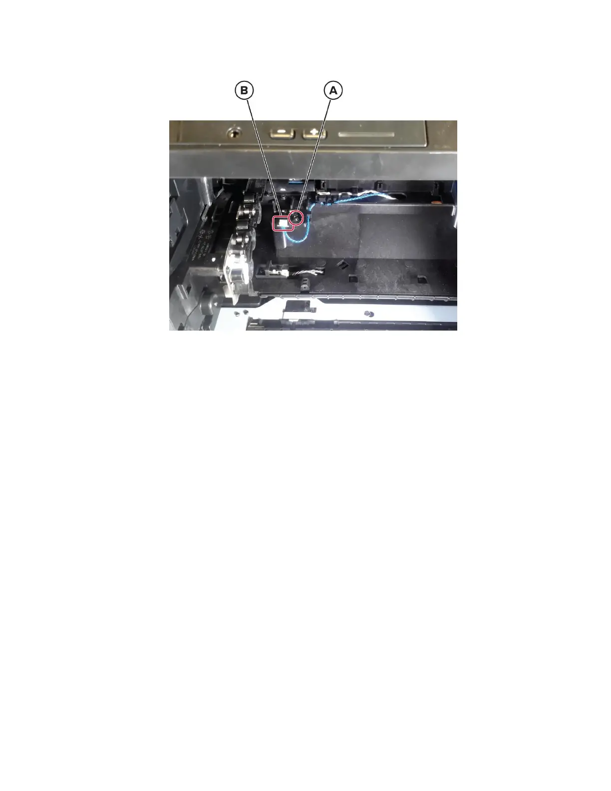 4 Remove the screw (A), and then disconnect the sensor cable (B).