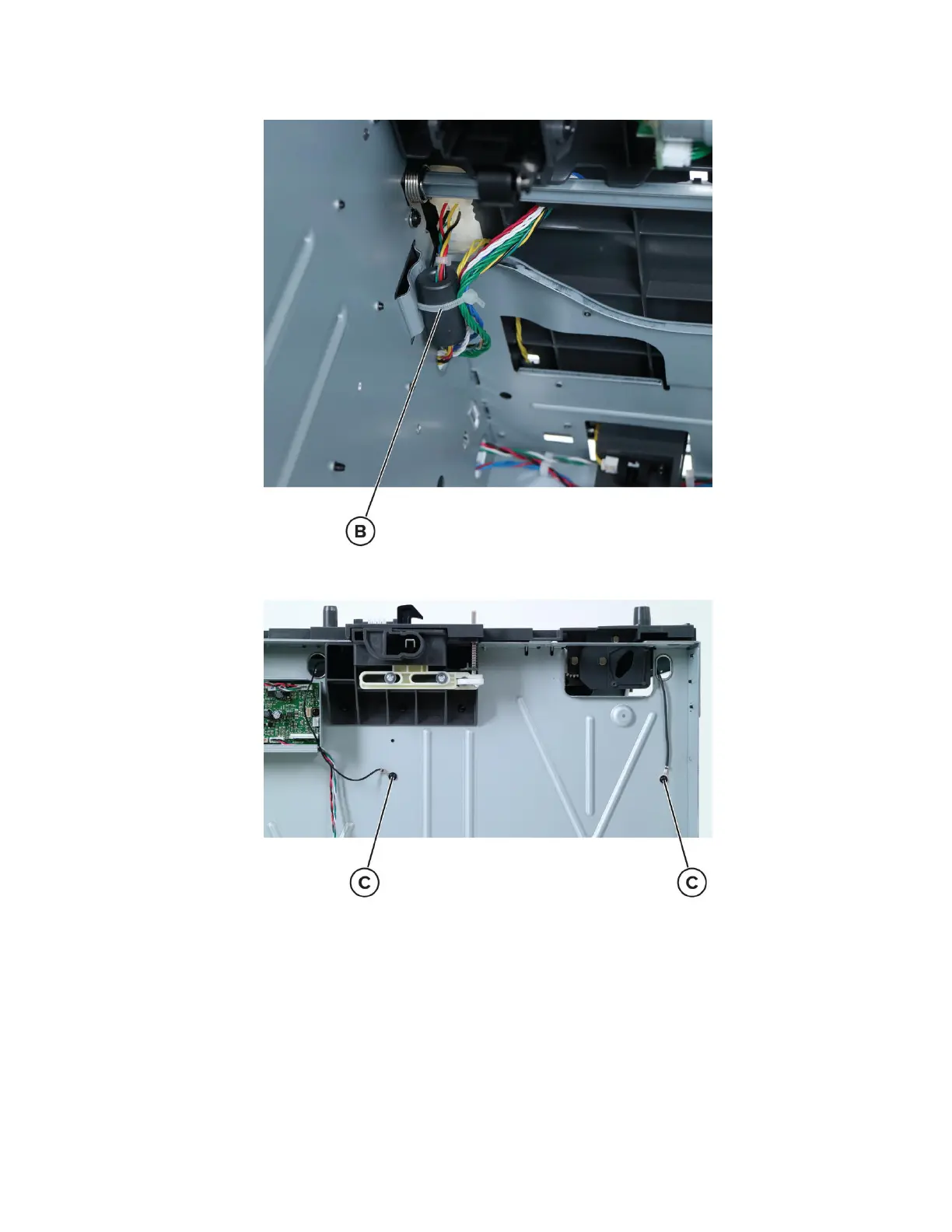 8 Remove the two screws (C) from the ground cables.