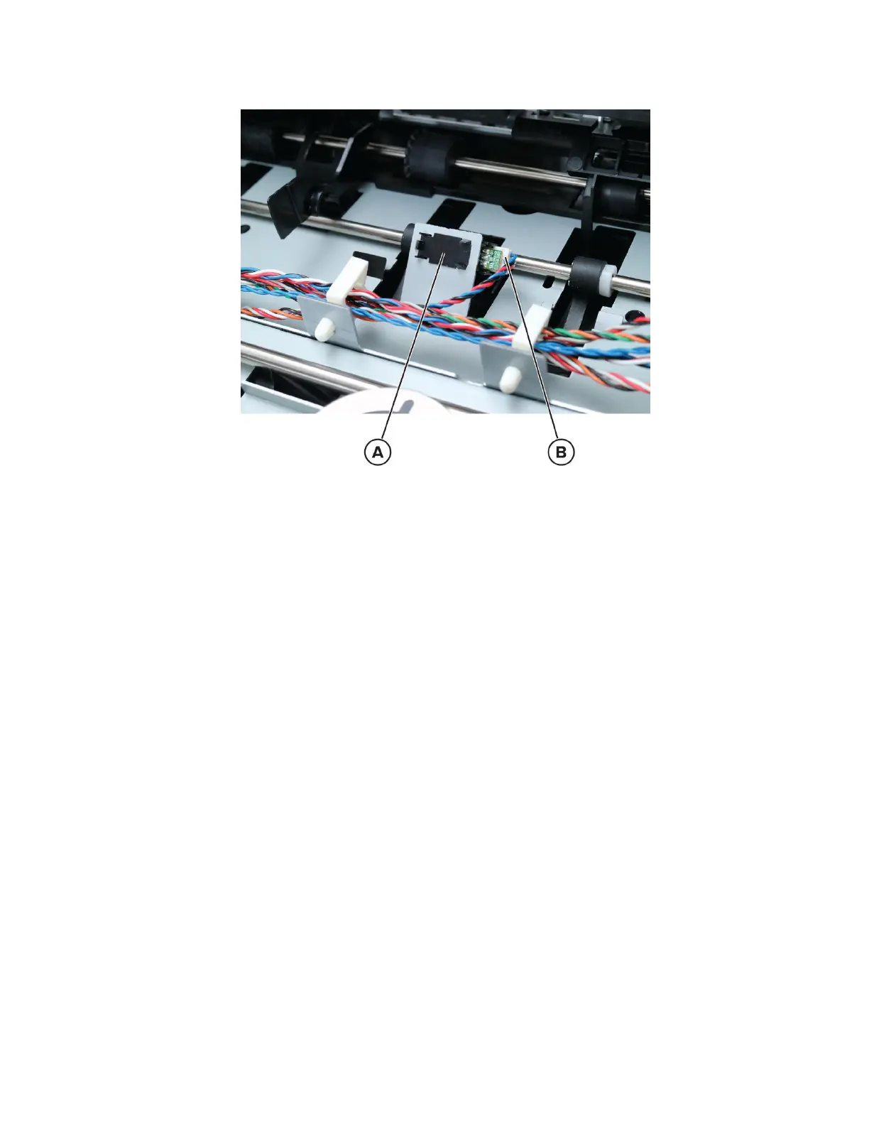 4 Remove the sensor retainer (A), and then disconnect the cable (B).