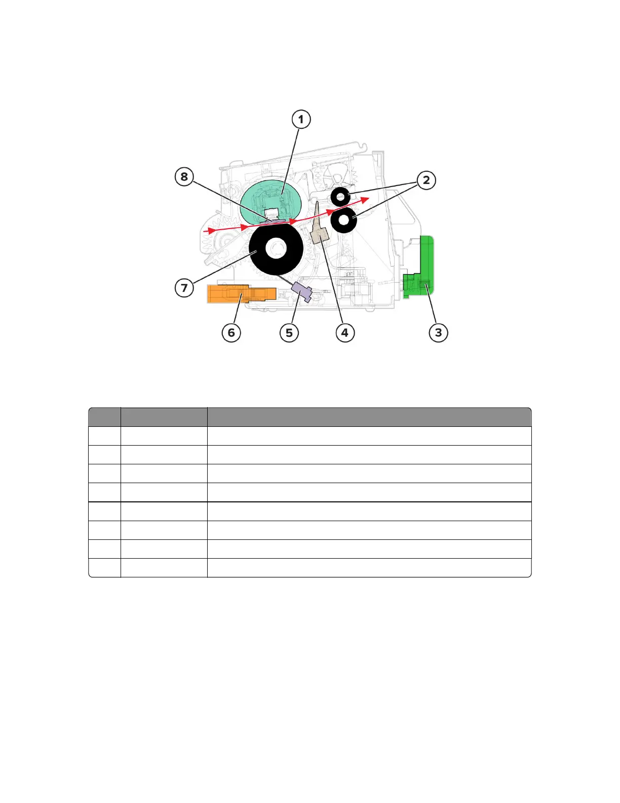 8 Heater bar Supplies heat to the fusing process.