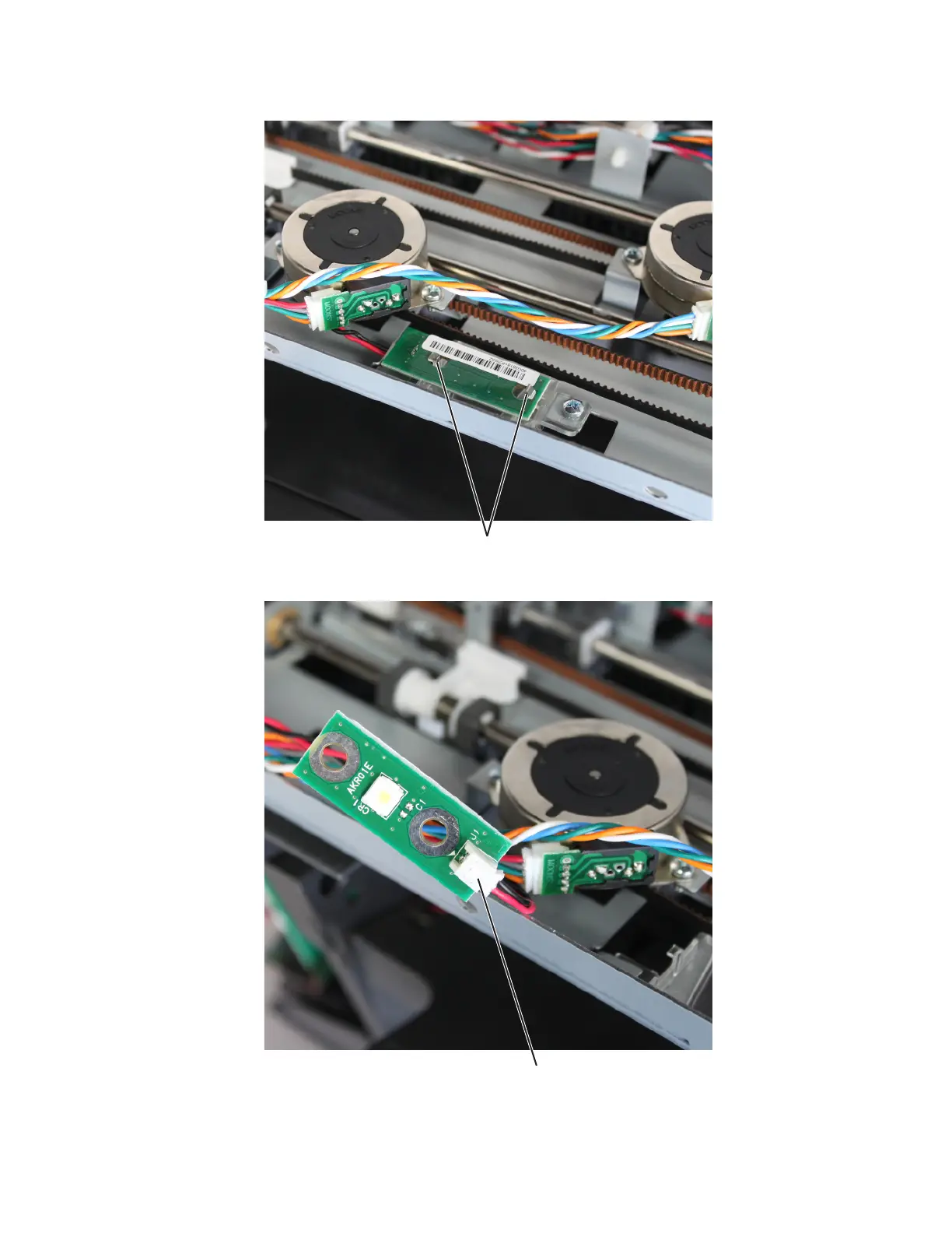 5 Disconnect the cable (B), and then remove the LED.