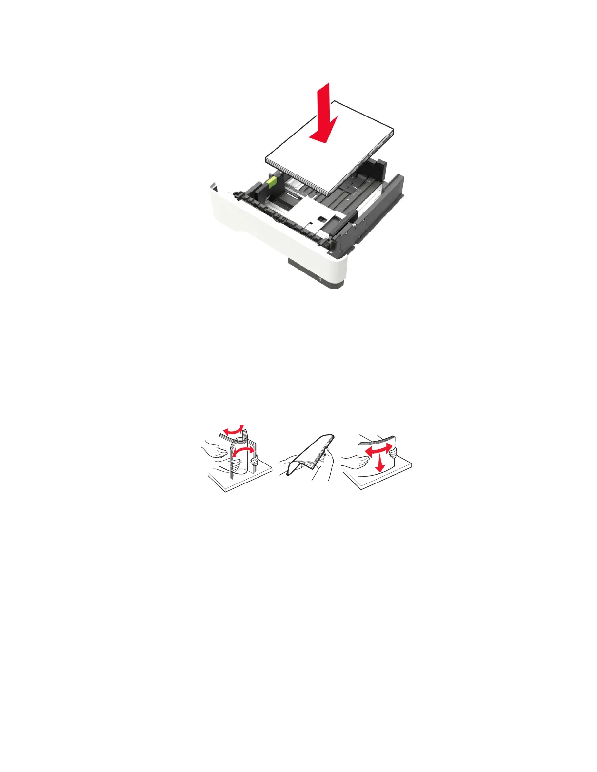 • Flex, fan, and align the paper edges before loading.