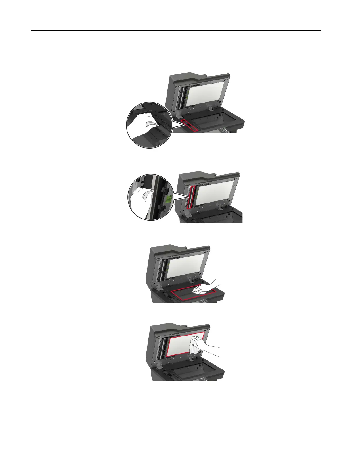 2 Using a damp, soft, lint-free cloth, wipe the following areas: