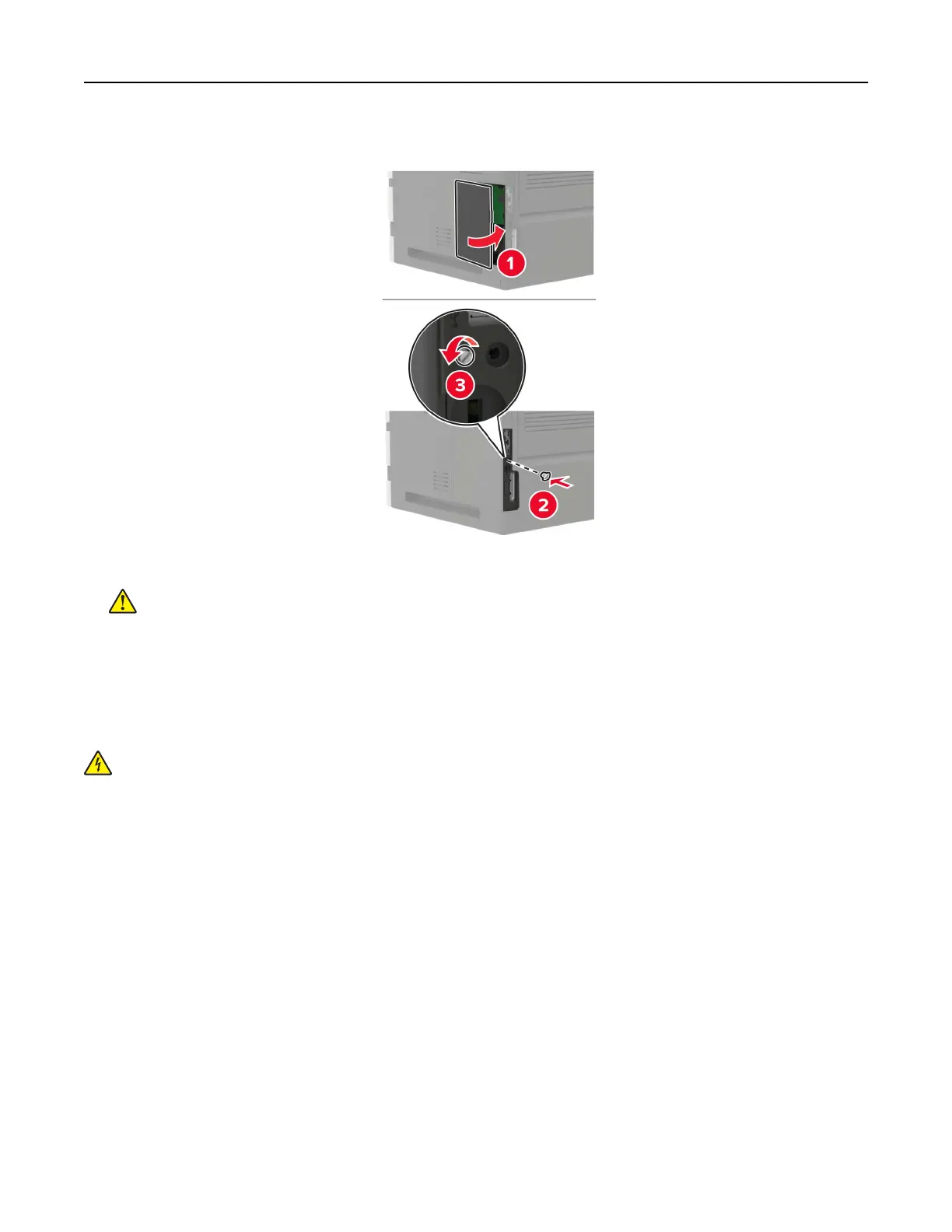 board or installing optional hardware or memory devices sometime after setting up the printer, then turn