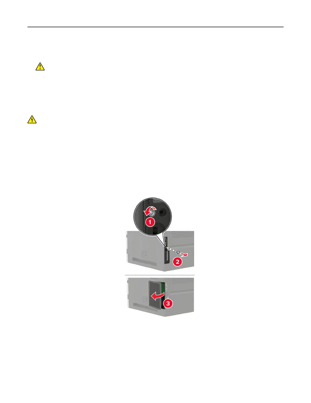 board or installing optional hardware or memory devices sometime after setting up the printer, then turn