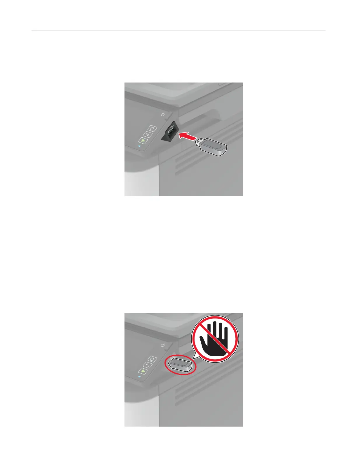 • If you insert the flash drive when an error message appears, then the printer ignores the flash drive.