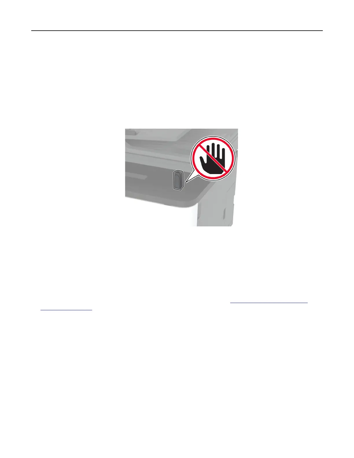 Warning—Potential Damage: To avoid loss of data or printer malfunction, do not touch the