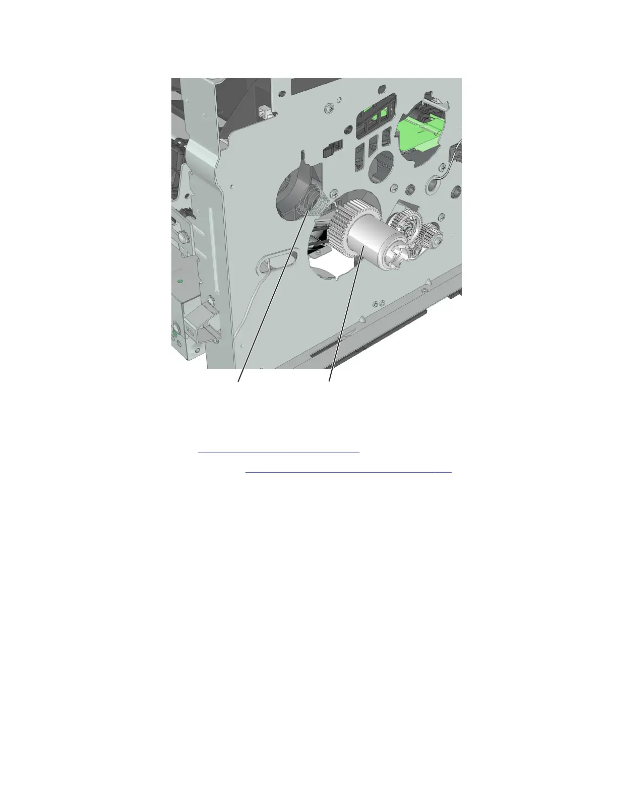 5 Remove the spring (B) and the fuser gear (C).