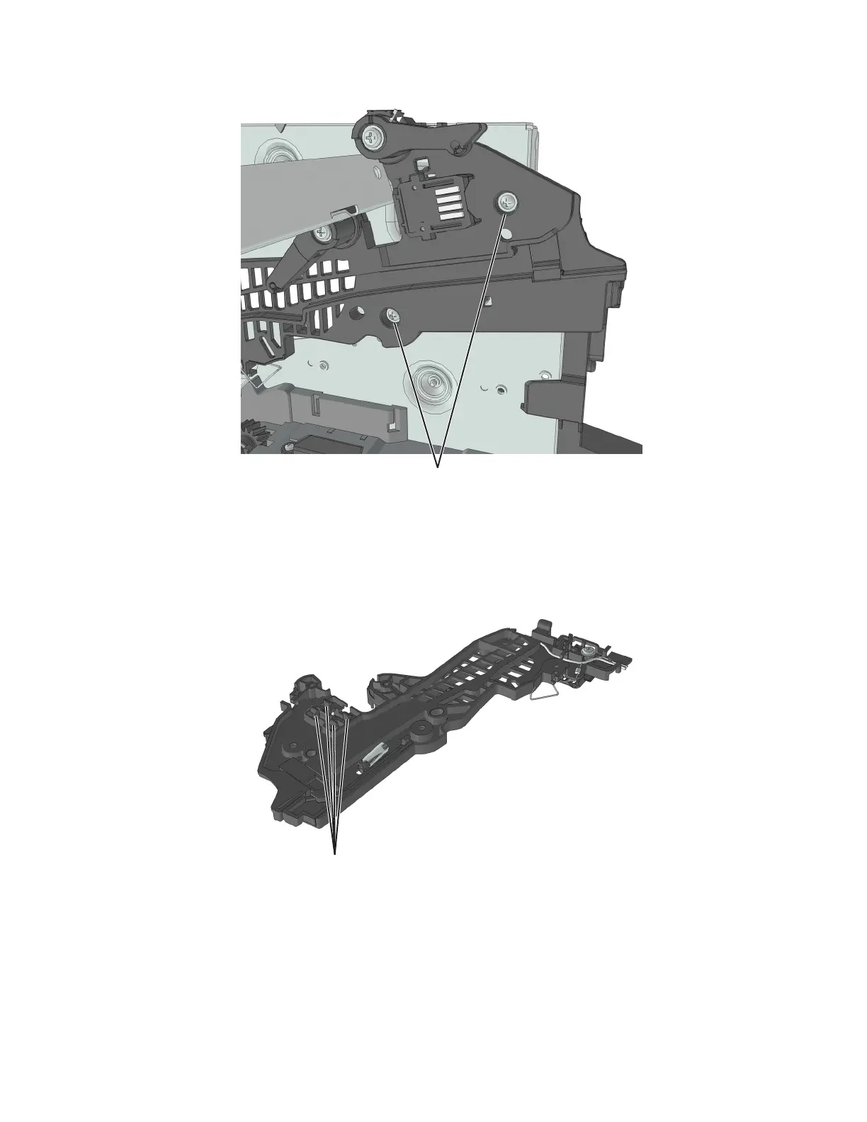 5 From behind the right cartridge guide, release the 4 latches (C) to detach the toner cartridge smart chip