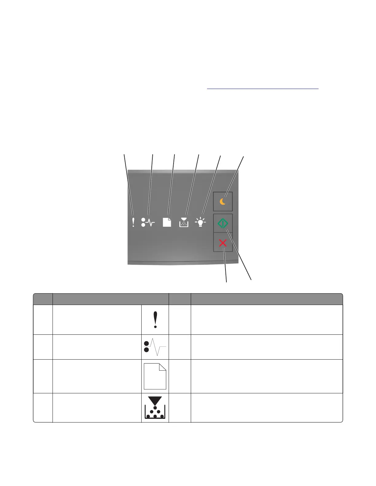 7 When ready, the equivalent light pattern of the printer status is displayed.