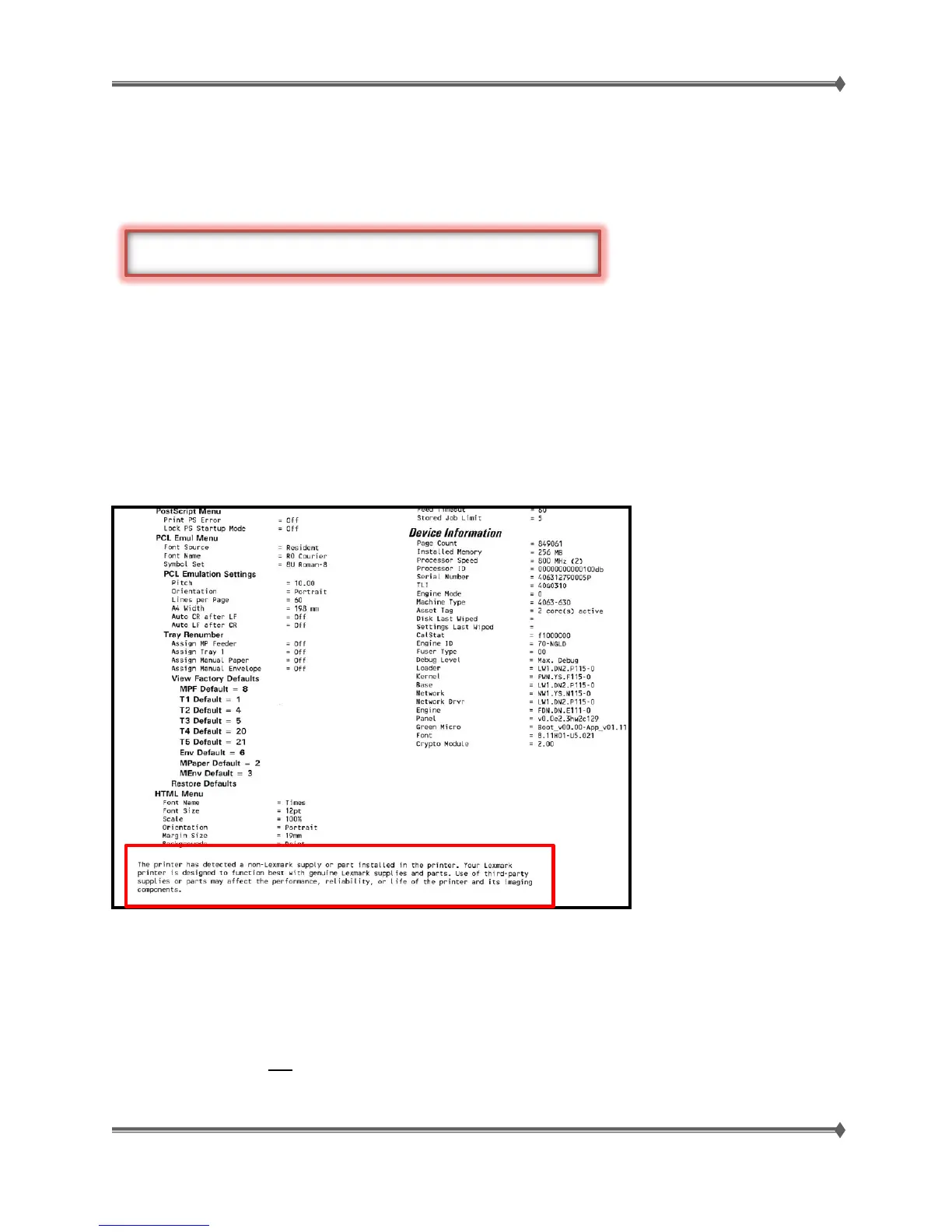 instead, the customer must remove the non-genuine Lexmark supply or part and replace it with a genuine
