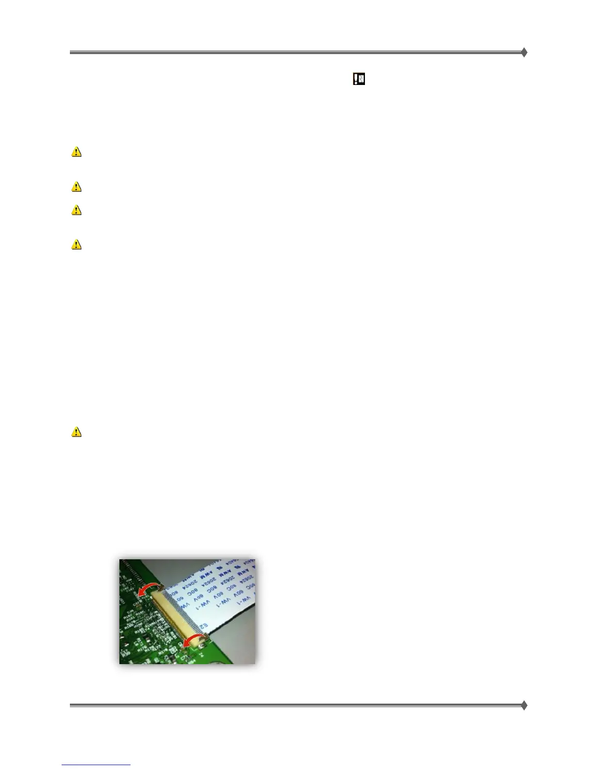 Warning! Do not insert the cable diagonally into the ZIF socket. This may damage the contacts.