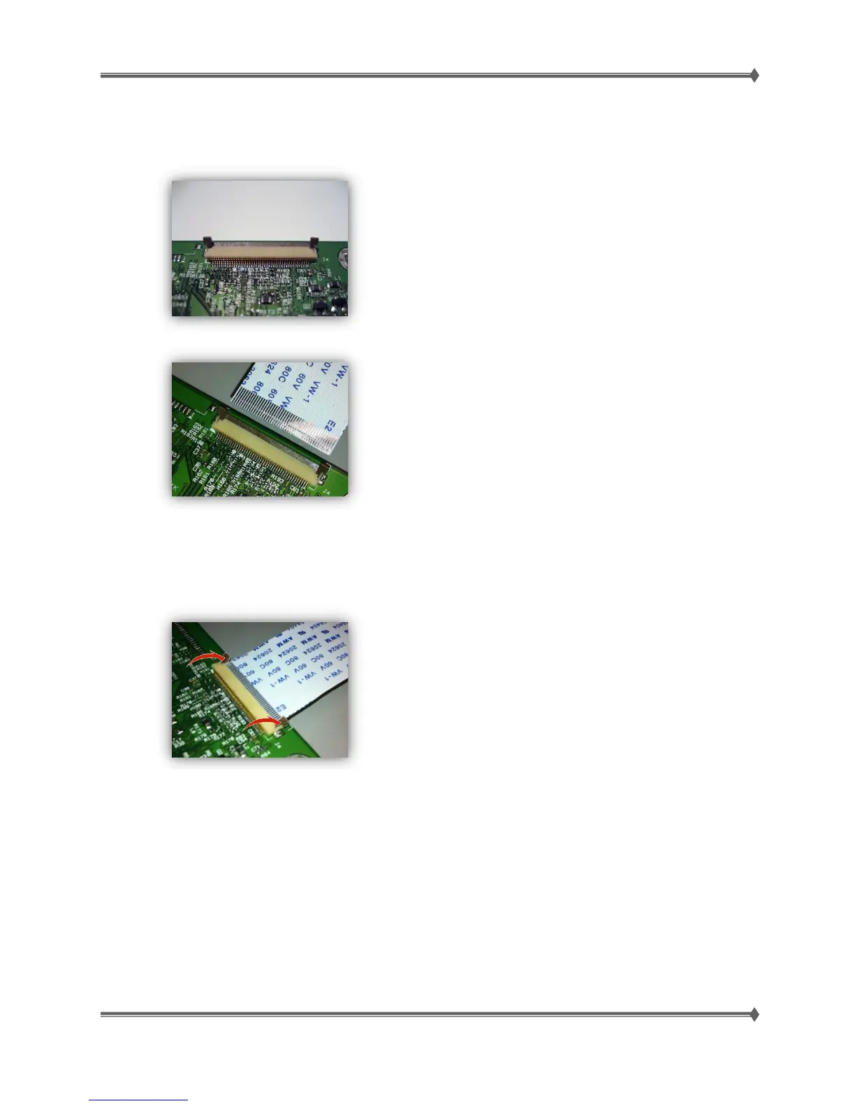 2. Insert the cable with the contacts on the cable facing up. Insert the cable on top of the actuator.