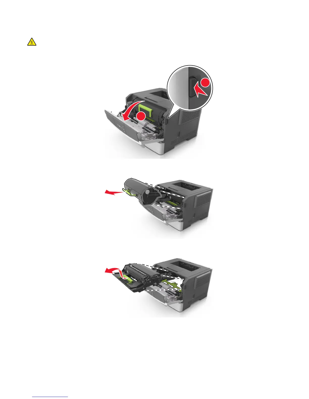 CAUTION—HOT SURFACE: The inside of the printer might be hot. To reduce the risk of injury from a hot