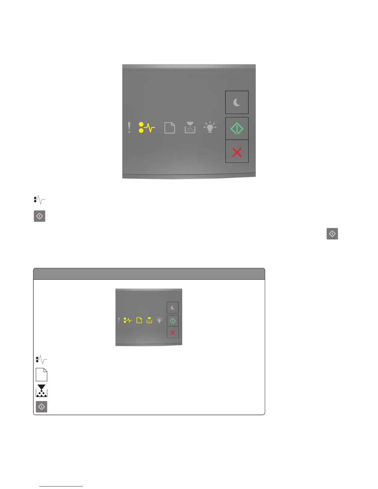 If the printer control panel light sequence matches the light sequence in the preceding illustration, then press