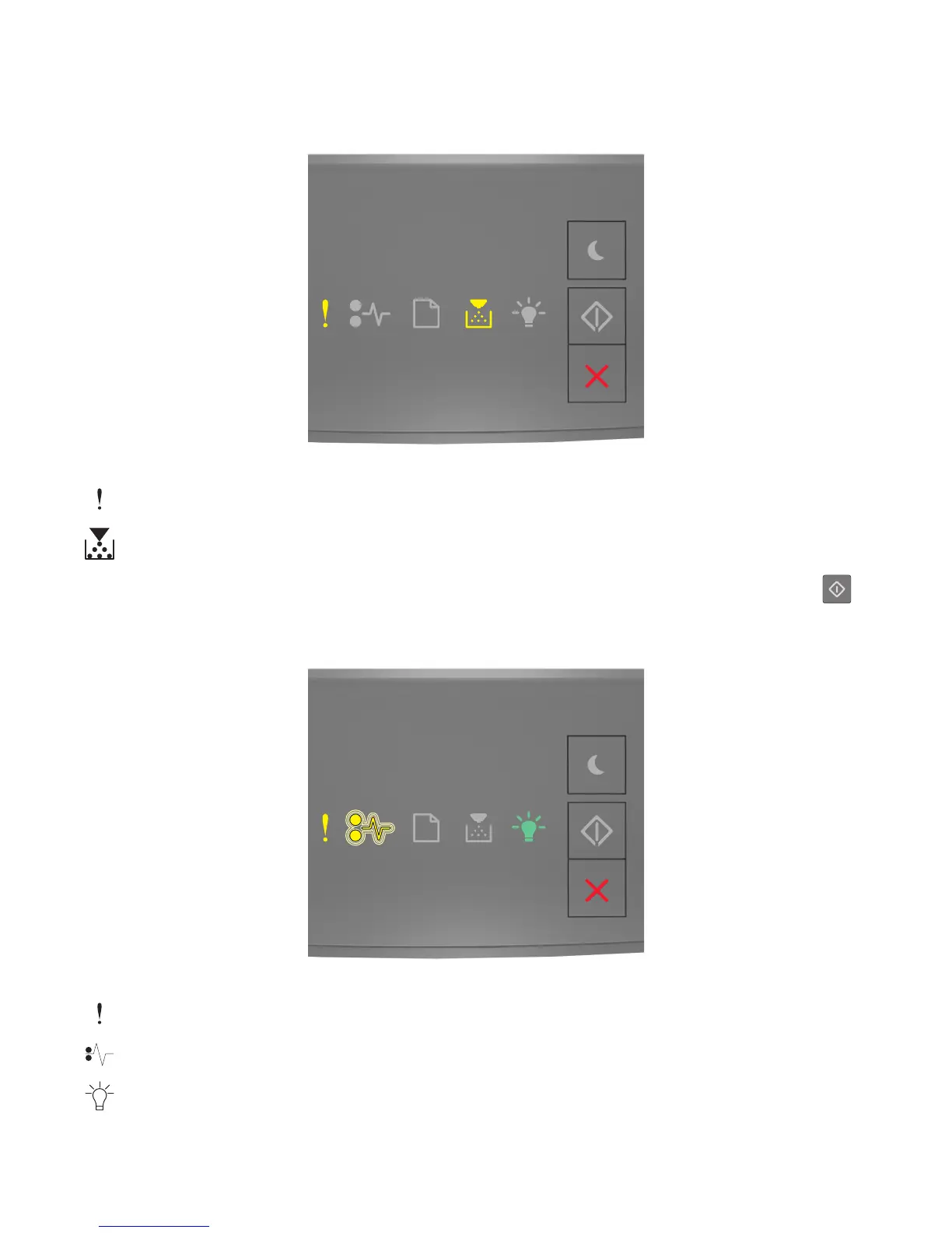 If the printer control panel light sequence matches the light sequence in the preceding illustration, then press
