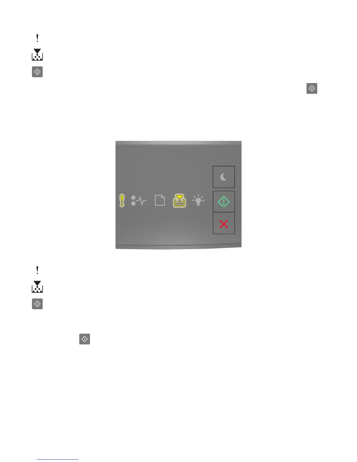 If the printer control panel light sequence matches the light sequence in the preceding illustration, then press